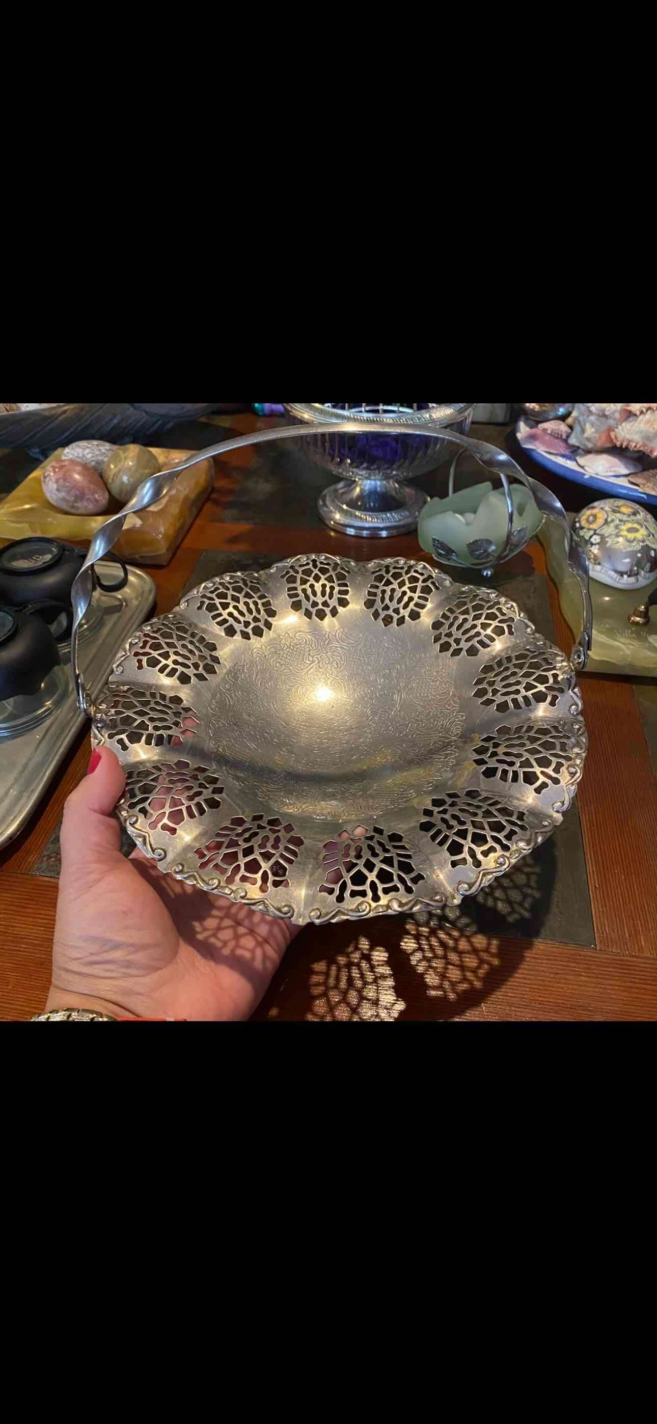 Elegante frutero metálico calado, ideal para decoración o centro de mesa.