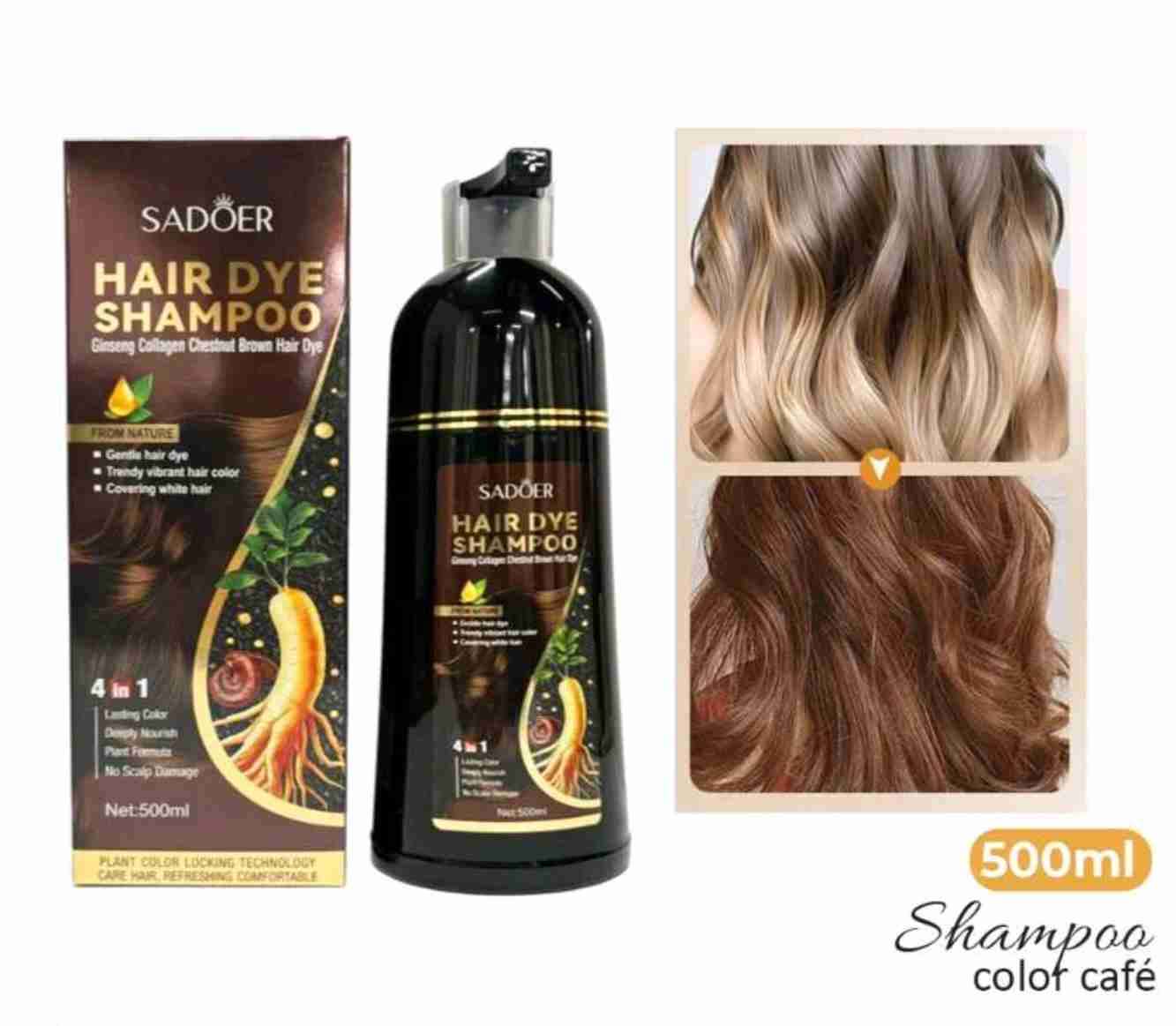 Shampoo colorante para cabello tono café. Ideal para cubrir canas y dar un color vibrante. Producto de 500ml.