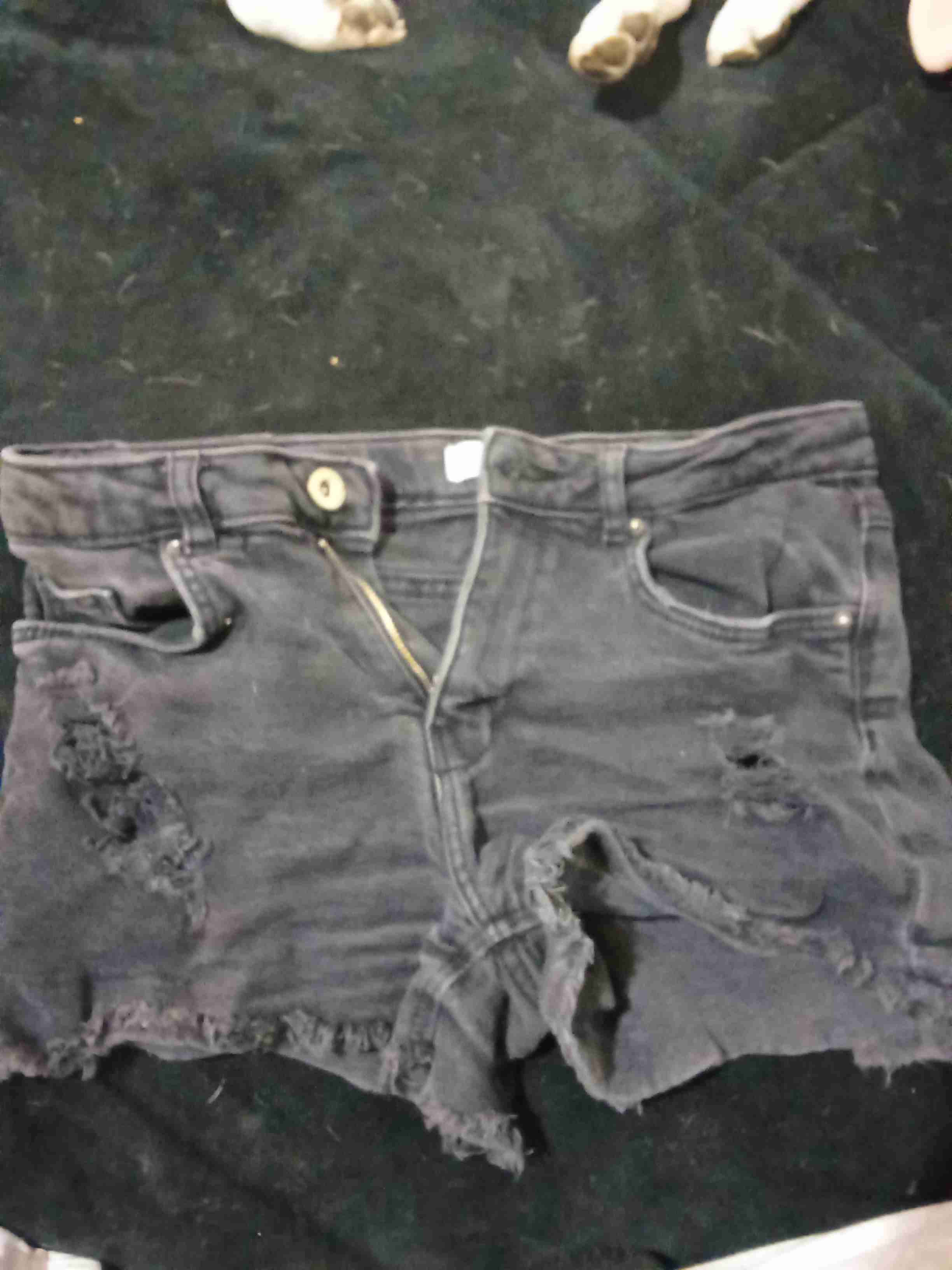 Shorts de mezclilla con diseño desgastado y roturas. Ideal para uso casual y estilo veraniego. En buen estado general.