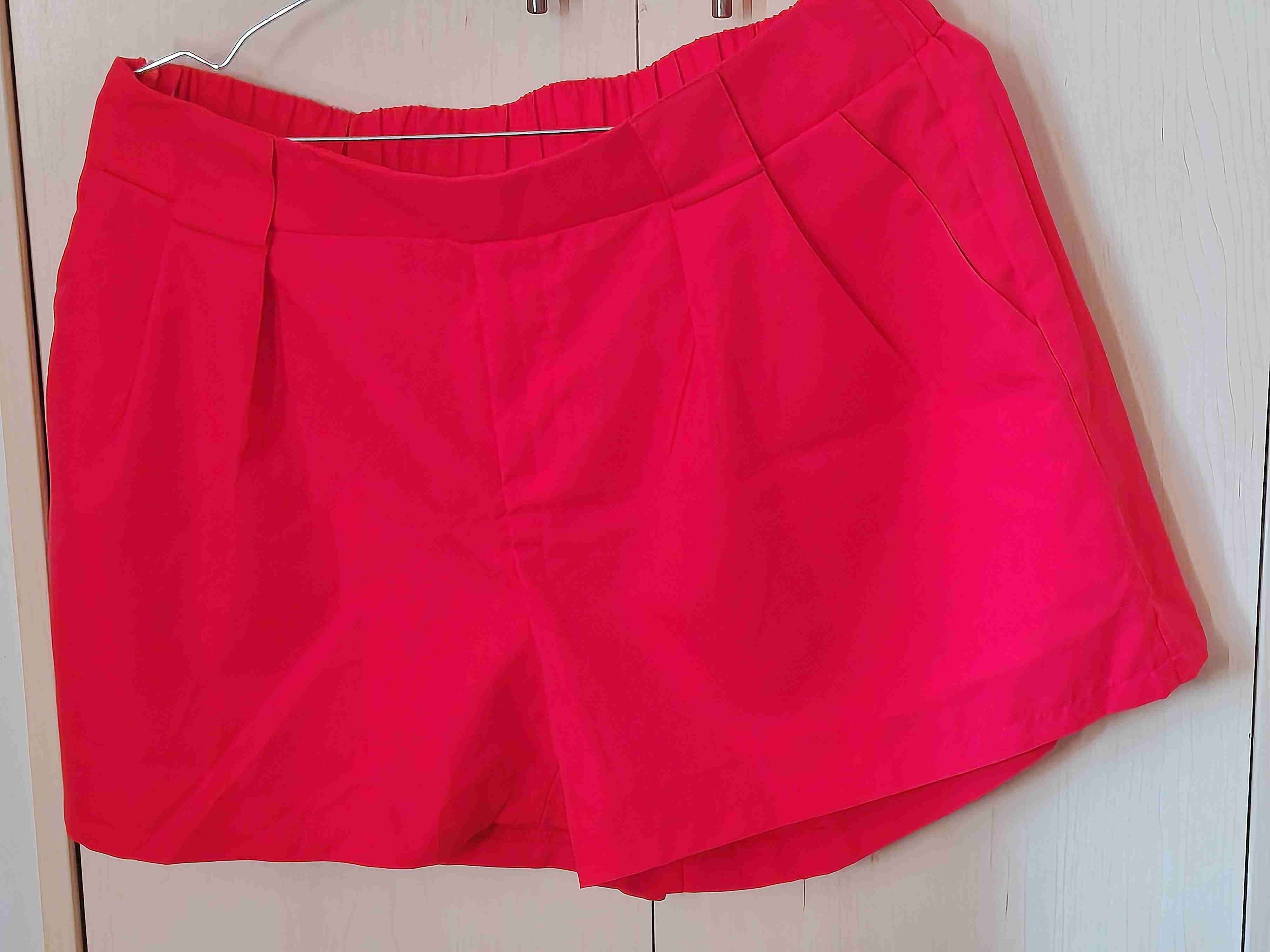 Shorts de color rojo vibrante, estilo casual para el verano. En buen estado, ideales para un look relajado. Tela delgada no elasticada. Elástico en la parte trasera. Solo 1 uso. SheIn.