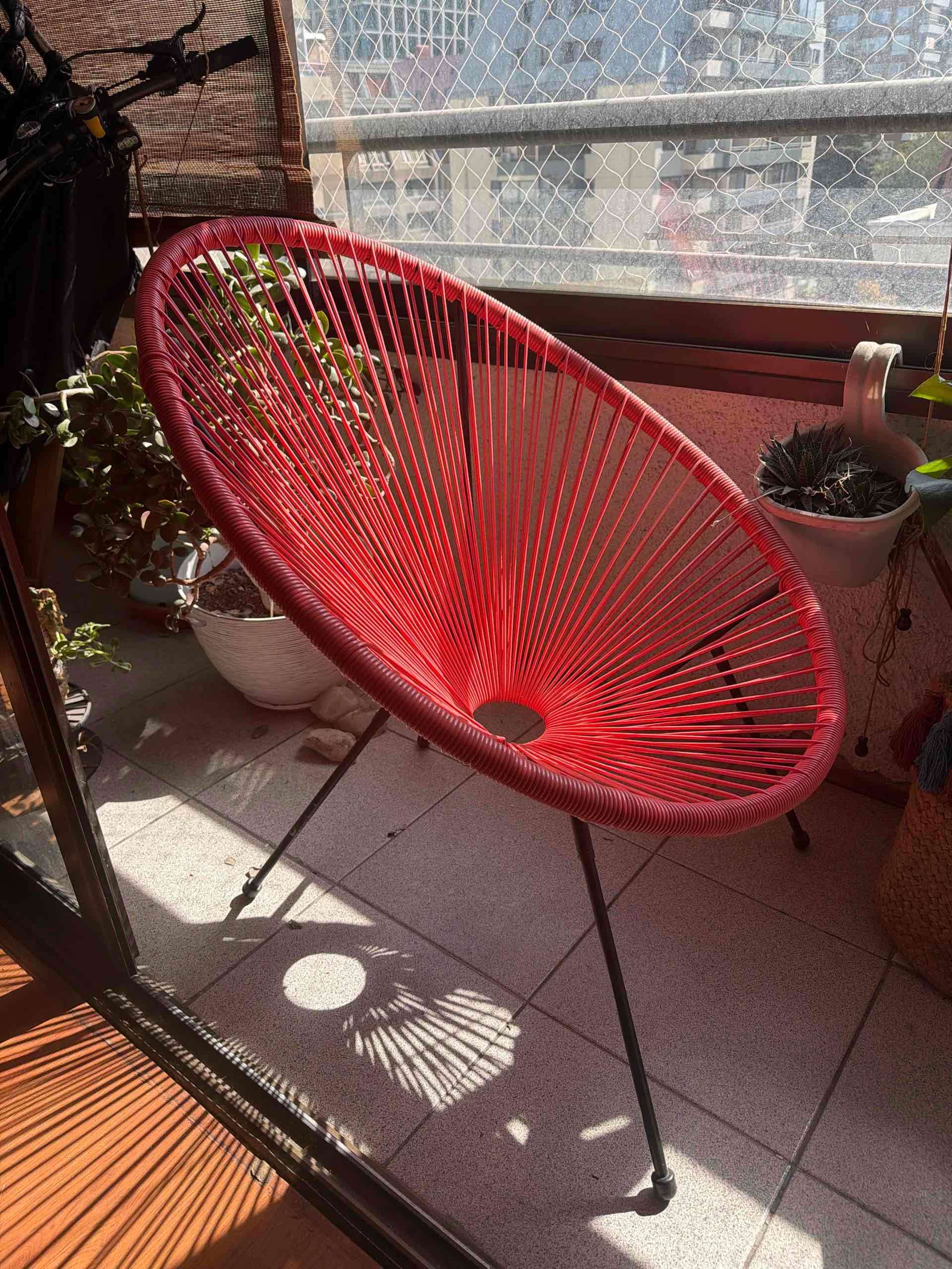 Sillas de diseño Acapulco en color coral vibrante, ideal para decoraciones modernas. En muy buen estado.