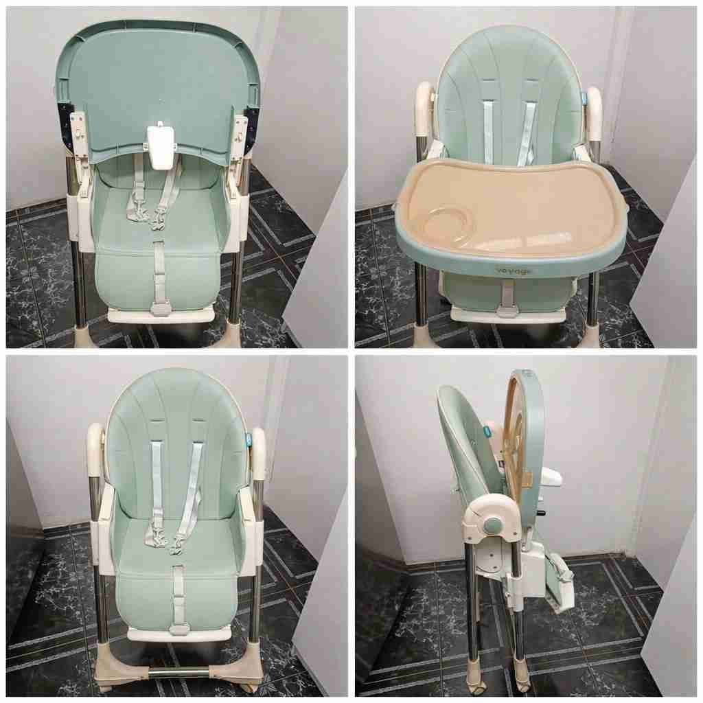 Silla de comer plegable en buen estado, ideal para bebés. Color verde pastel y bandeja desmontable. Se vende por muy poco uso