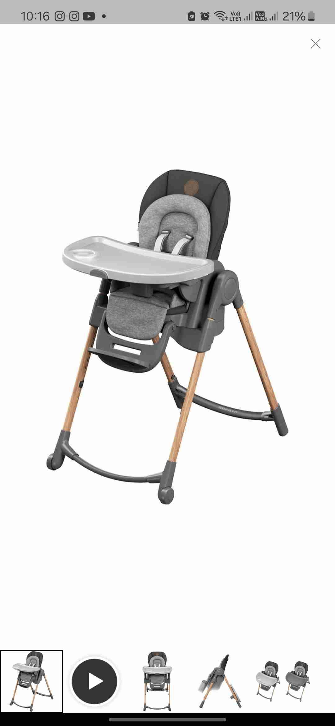 Cómoda silla de comer con diseño moderno en color gris. Ideal para la hora de la comida de tu bebé. Se encuentra en perfecto estado. Tiene diferentes posiciones y alturas. Consulte para más detalle.