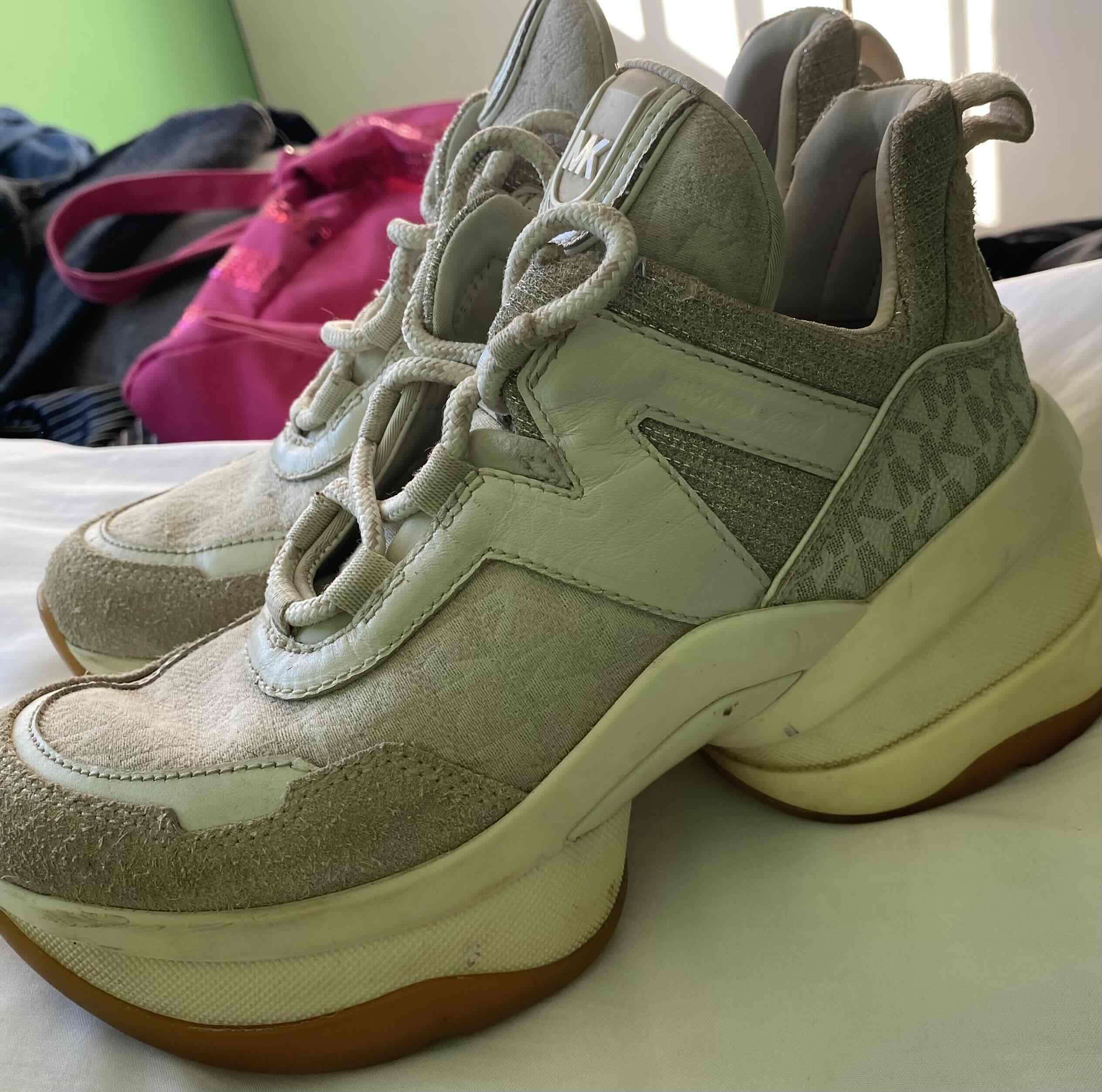 Zapatillas deportivas cómodas en buen estado, ideales para uso diario. Color beige con detalles únicos. Soy de Los Ángeles y realizó envíos