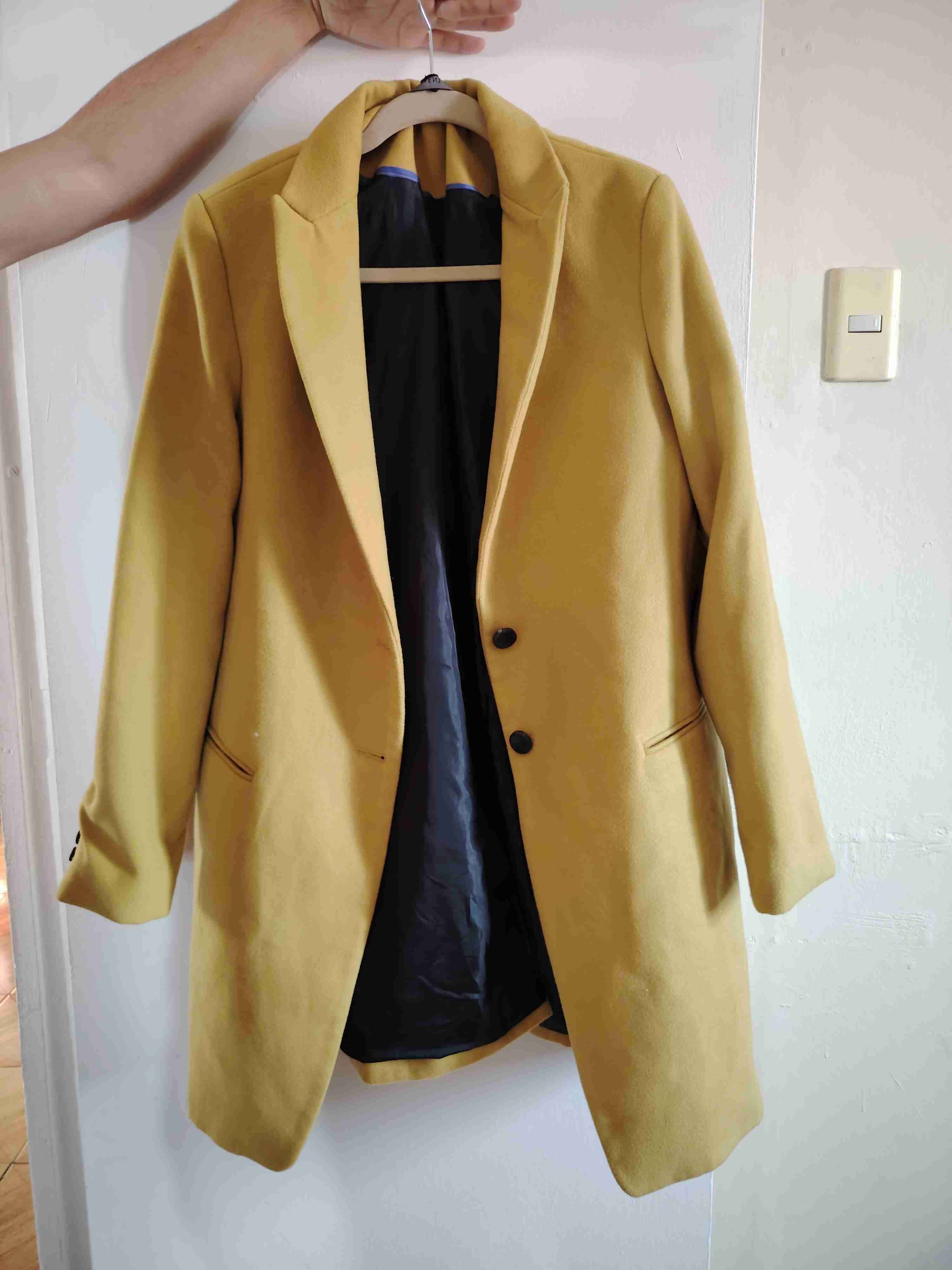 Abrigo largo color mostaza, ideal para días fríos. En buen estado, perfecto para combinaciones formales. Precio conversable.