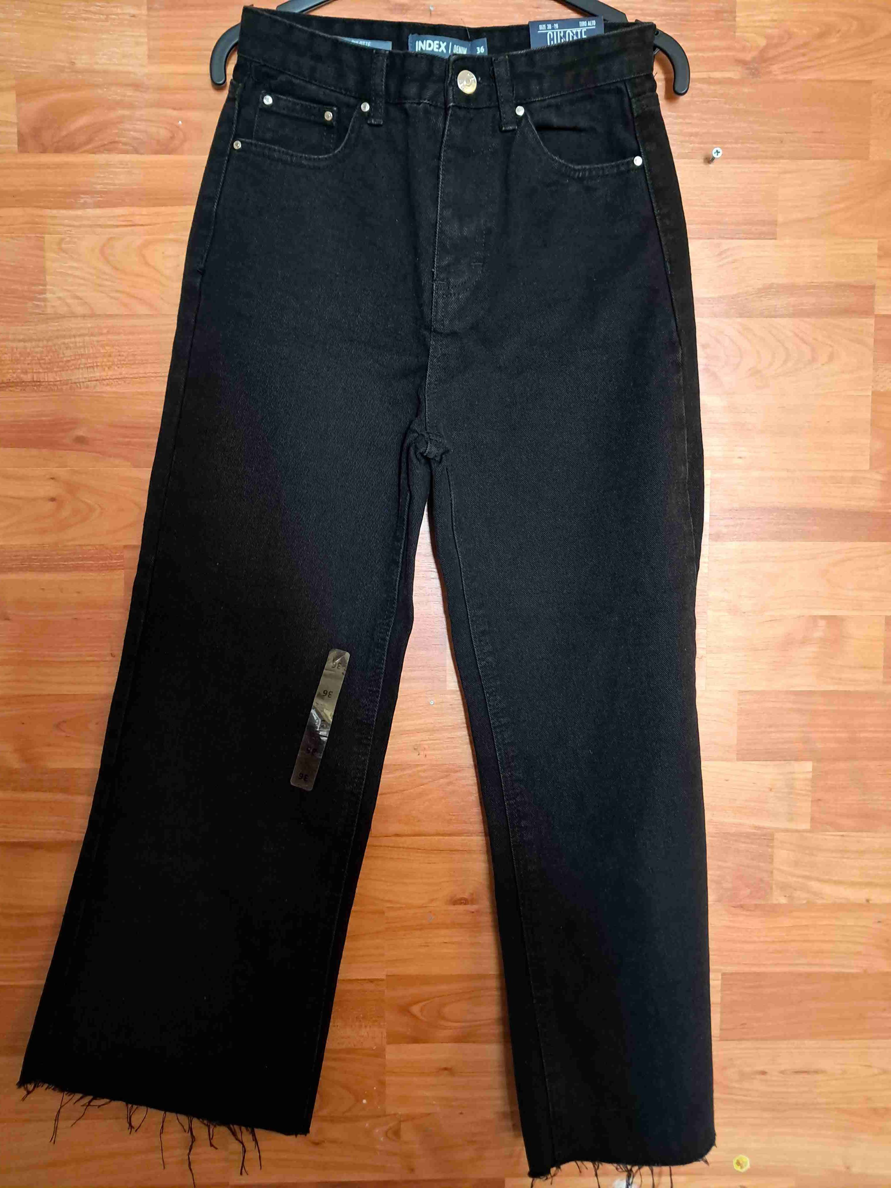 Jeans de mezclilla negros con estilo ancho, ligeras señales de uso. Perfectos para un look casual.