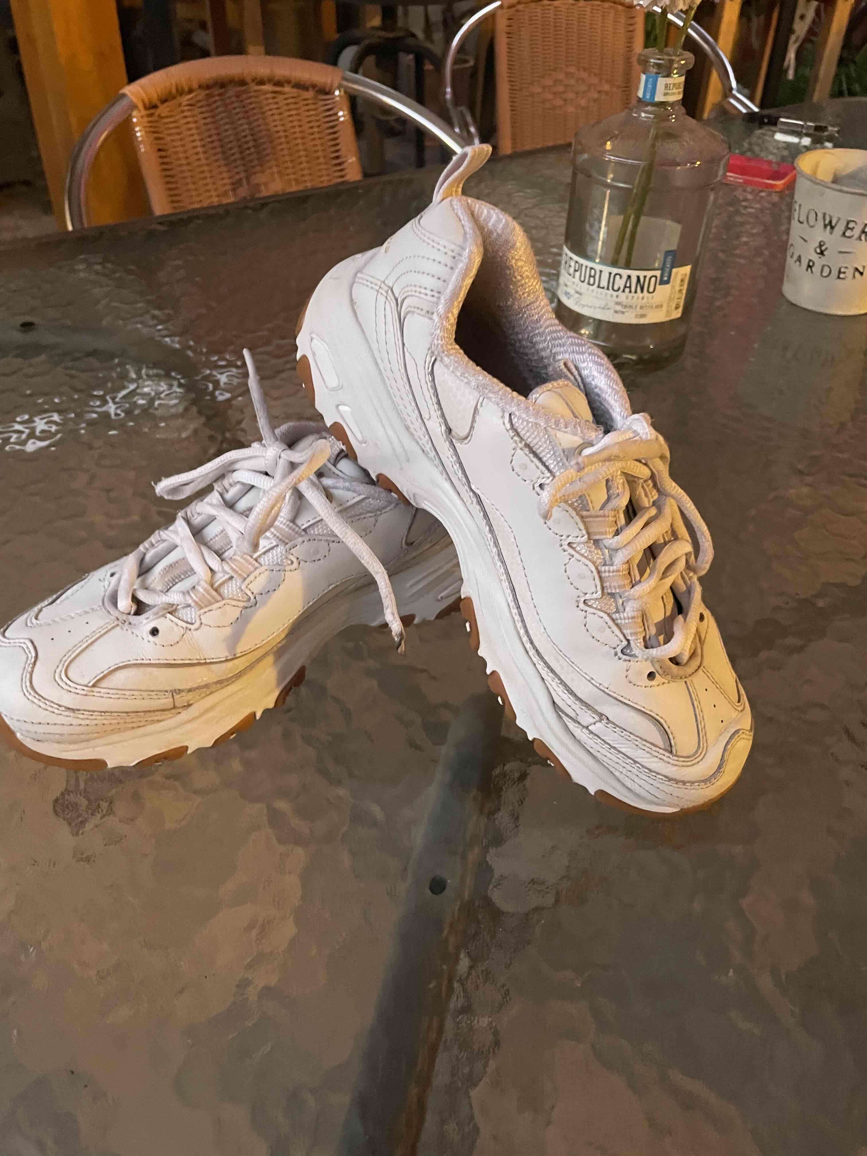Zapatillas blancas en buen estado, perfectas para actividades al aire libre. Suela antideslizante.