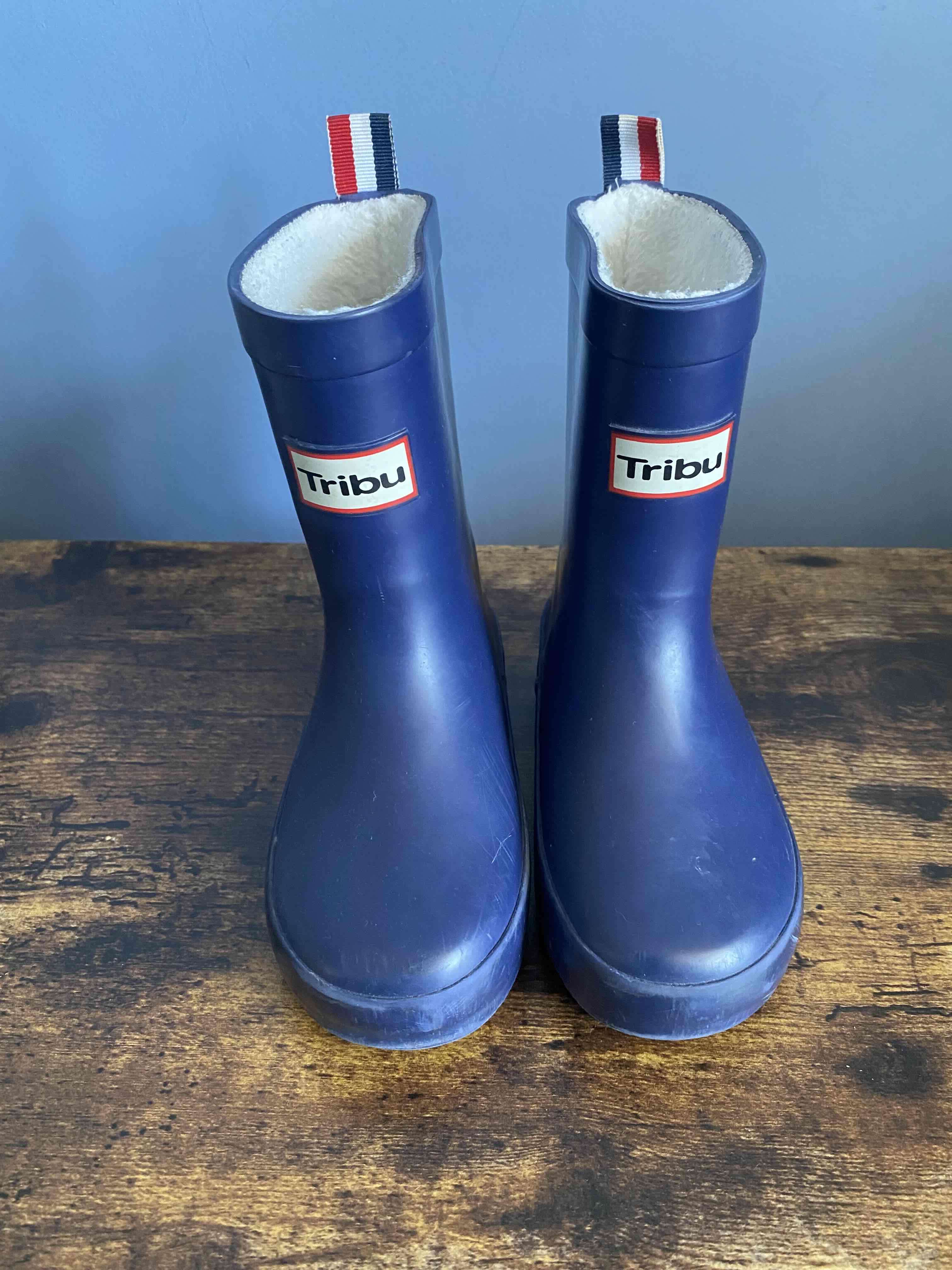 Botas de goma azul marca Tribu, cómodas y resistentes para la lluvia. Buen estado general con leves signos de uso talla 27