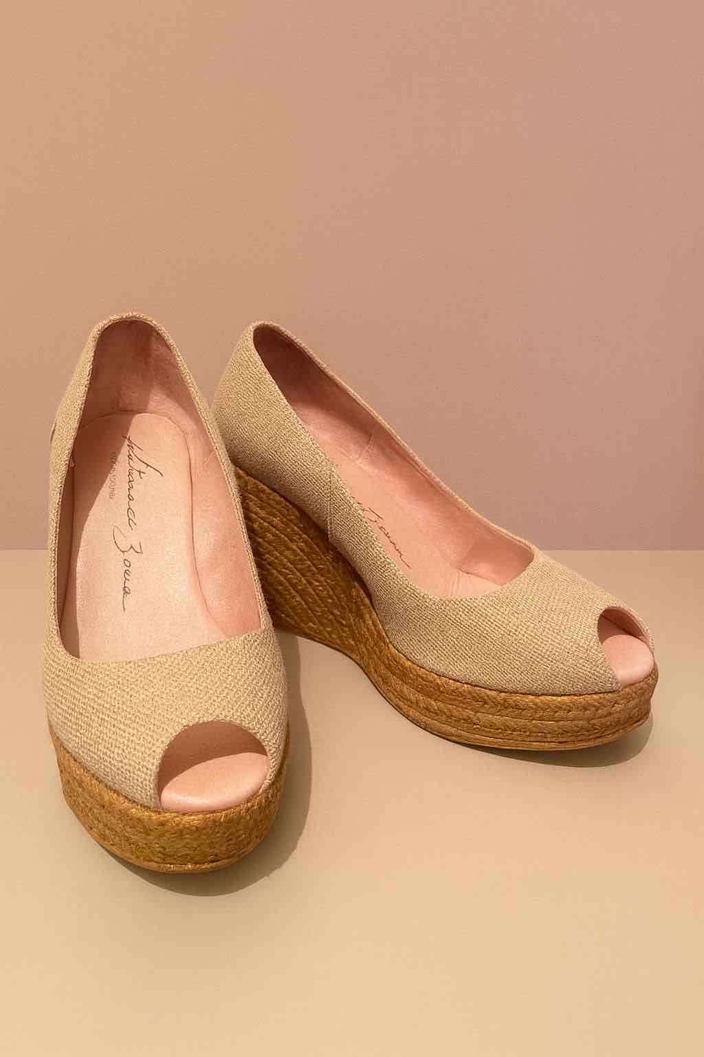 Zapatos de plataforma en color beige, estilo casual y elegantes. Buen estado general, perfectos para el verano.