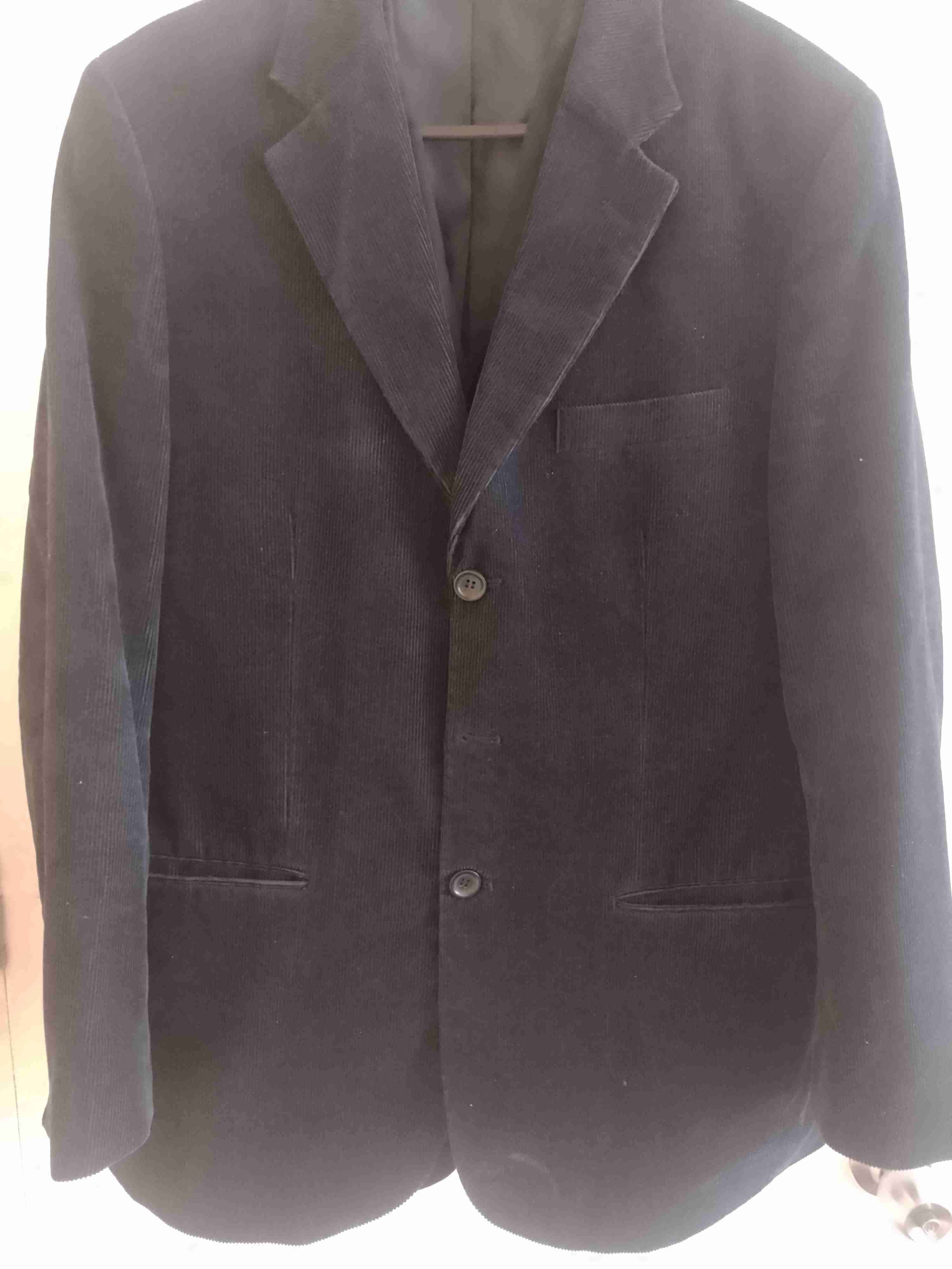 Elegante blazer de pana negro, ideal para ocasiones formales. En buen estado, con leves signos de uso.