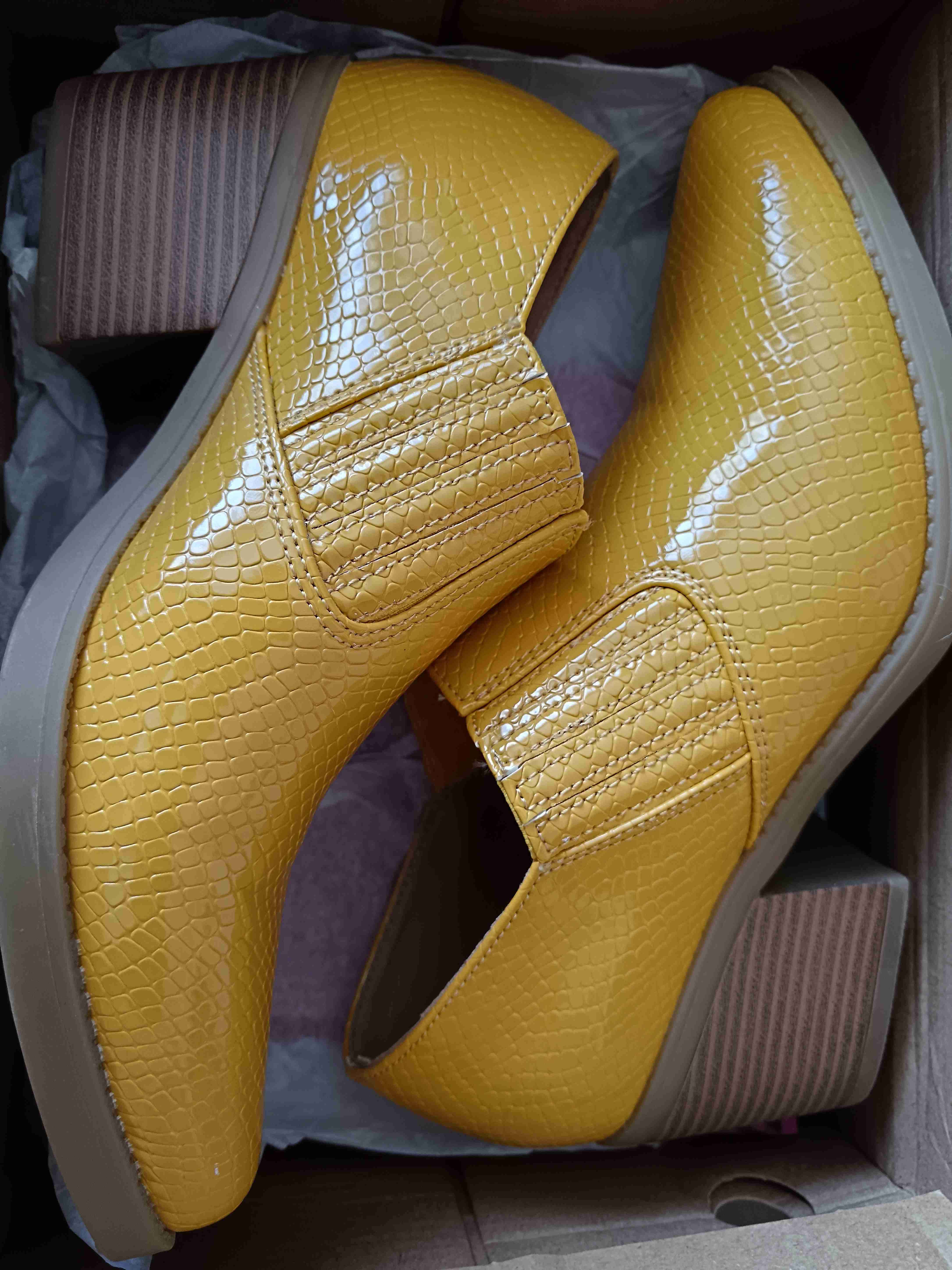 Botines de charol amarillo con diseño texturizado. En buen estado, ideales para un look moderno y llamativo. Nuevos n°37 (conversable)
