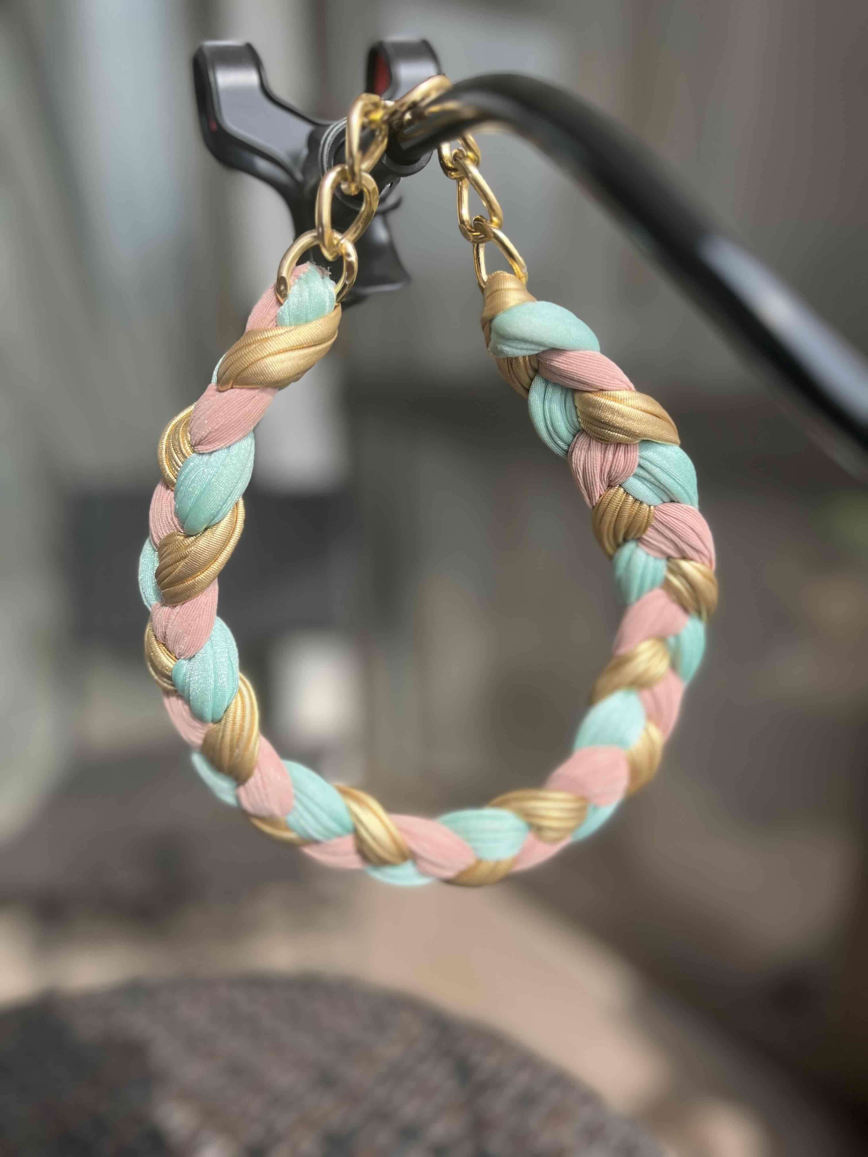 Collar trenzado con tonos pastel y dorado. Ideal para darle un toque vibrante a tu look diario.