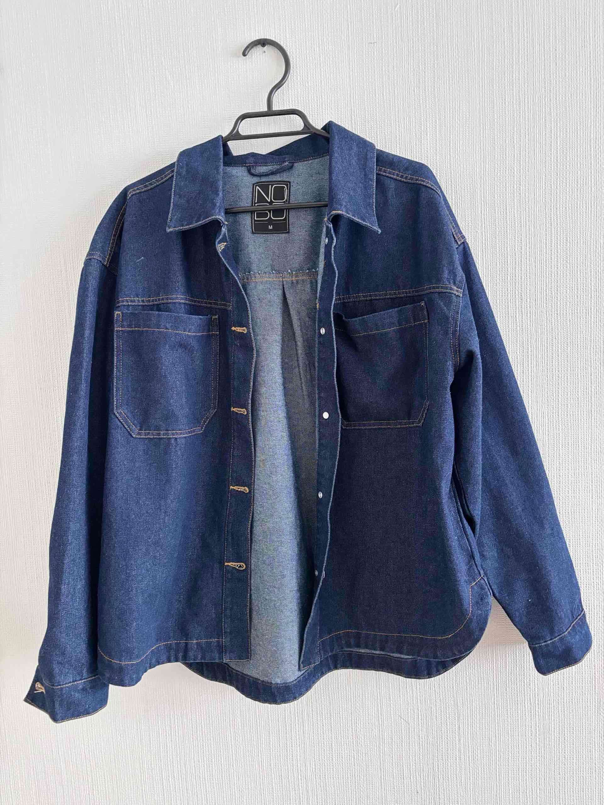 sobreCamisa de mezclilla estilo oversize en buen estado, ideal para uso casual. Color azul clásico.