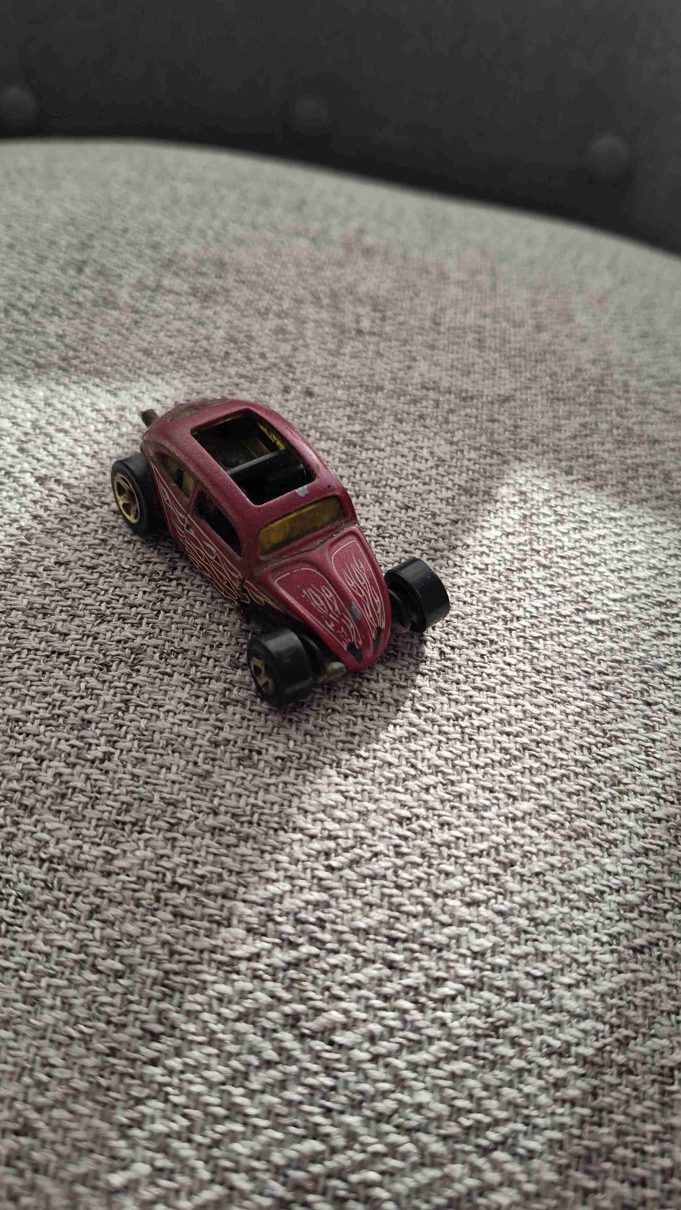 Auto de juguete vintage en buen estado, ideal para coleccionistas o decoración. Exhibe detalles de uso típicos de su edad.