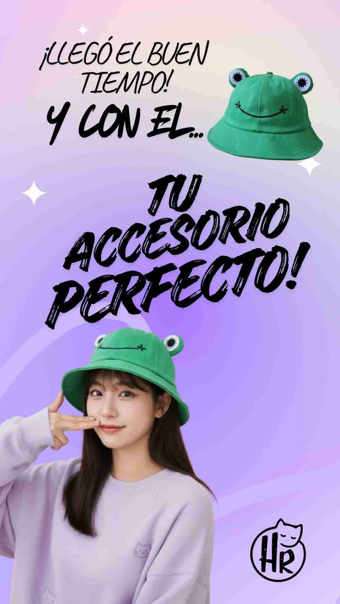 Sombrero estilo bucket verde con diseño divertido de rana. Perfecto para complementar tu look esta temporada.