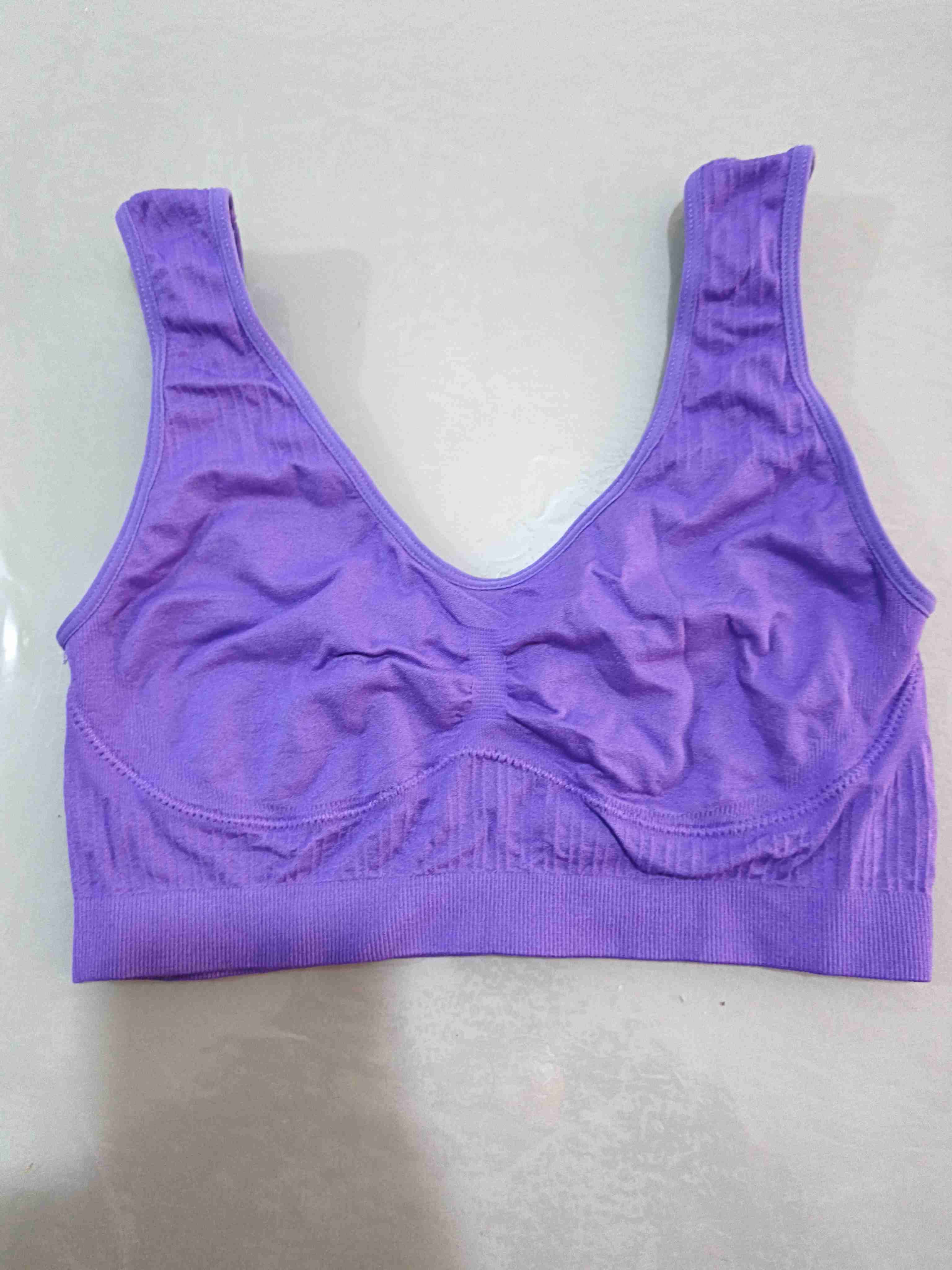Sostén deportivo morado talla estándar, única, tela suave, elasticada, sin broches ni relleno, nuevo, sin uso. Modelo cómodo y sin aros. Ideal para actividades deportivas o uso diario. Talla única Medidas en imagen Soporte marcado.