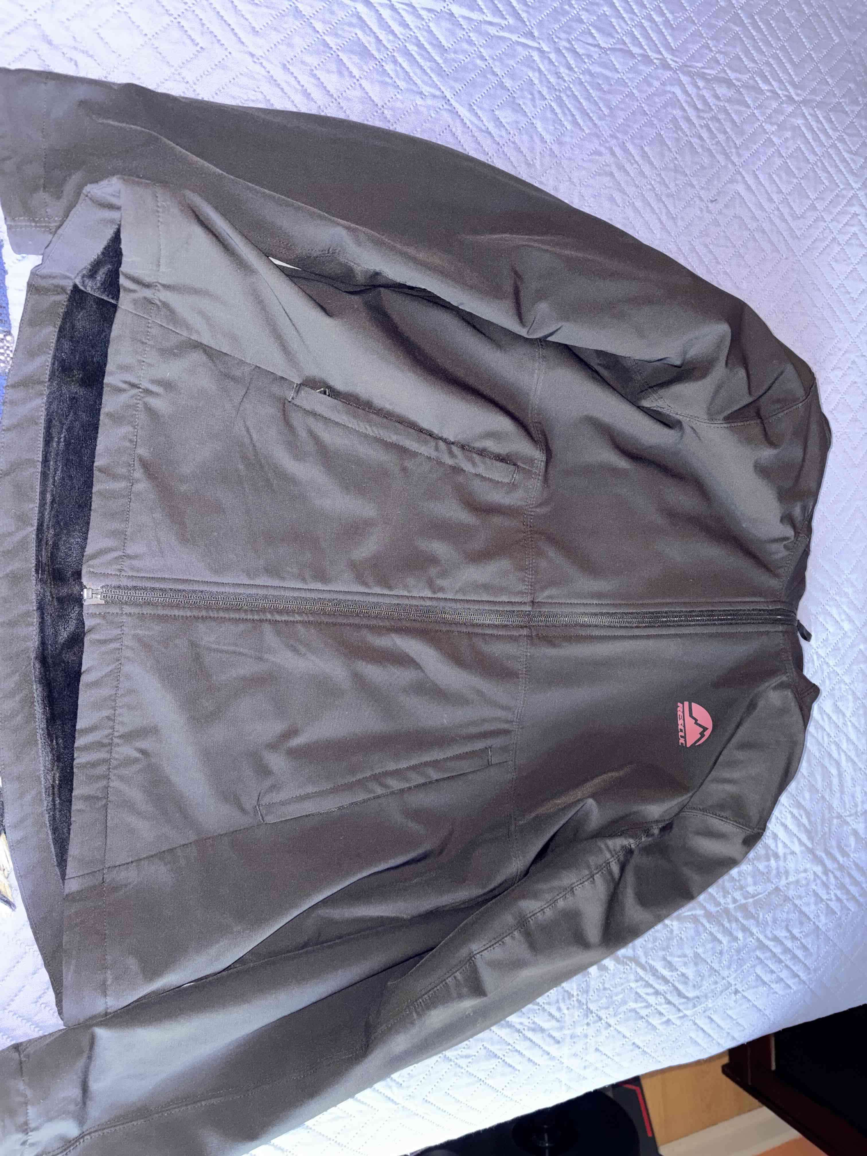 Chaqueta negra ideal para climas lluviosos, en buen estado con cierre completo y logo discreto.