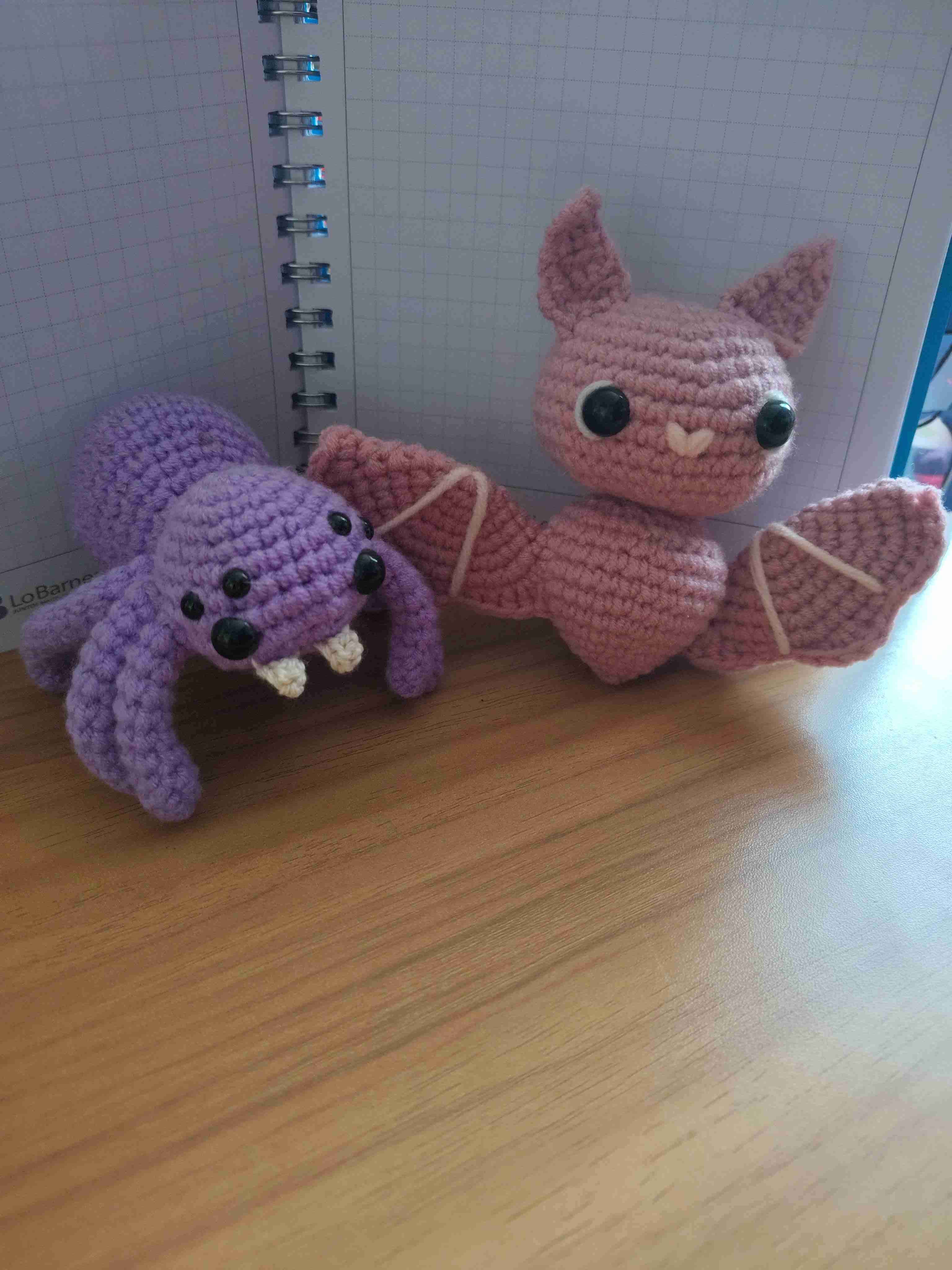 Muñecos amigurumi murciélago y araña