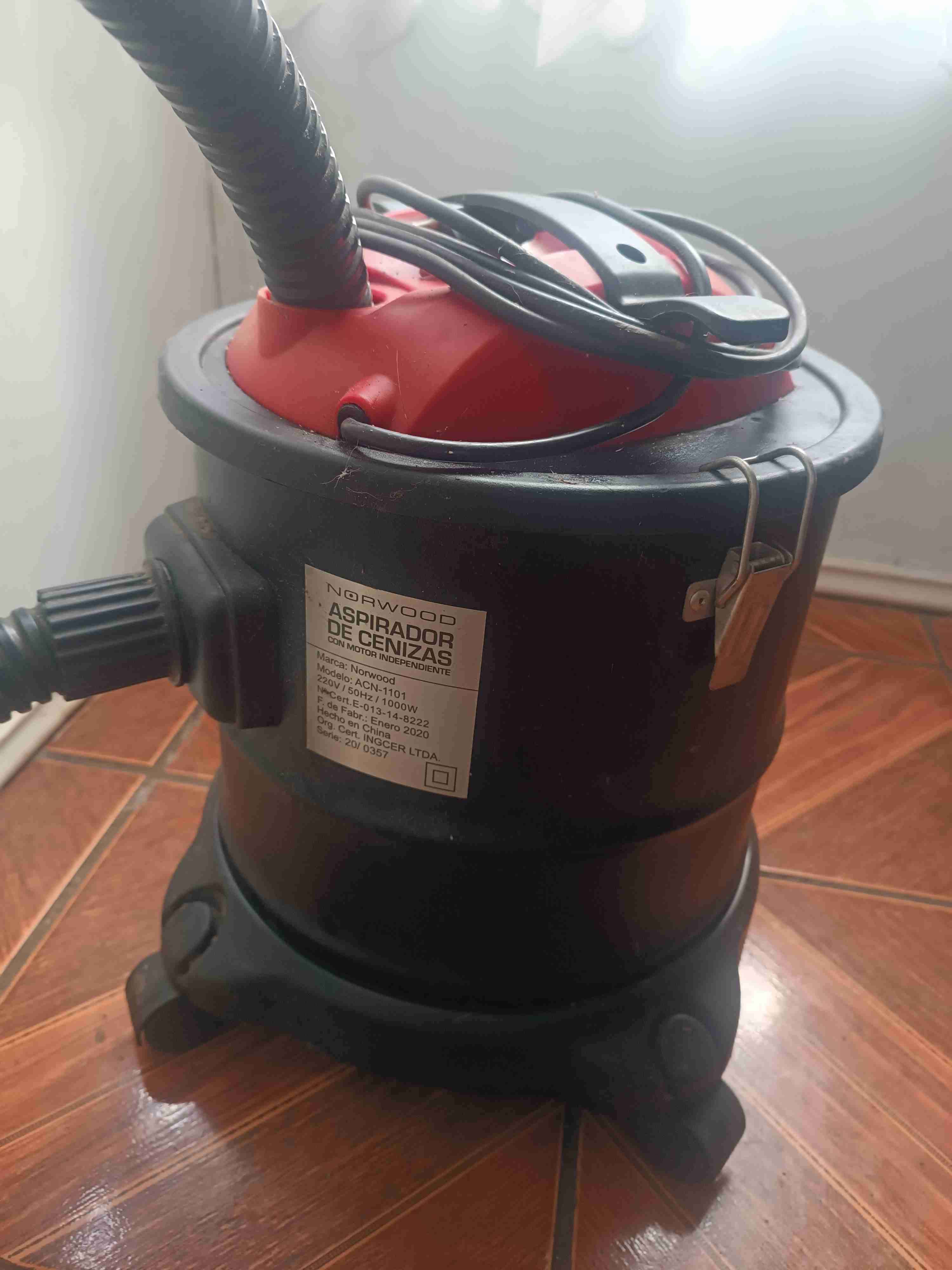 Aspiradora de cenizas en buen estado, ideal para limpiar chimeneas y parrillas. Modelo robusto y funcional.
