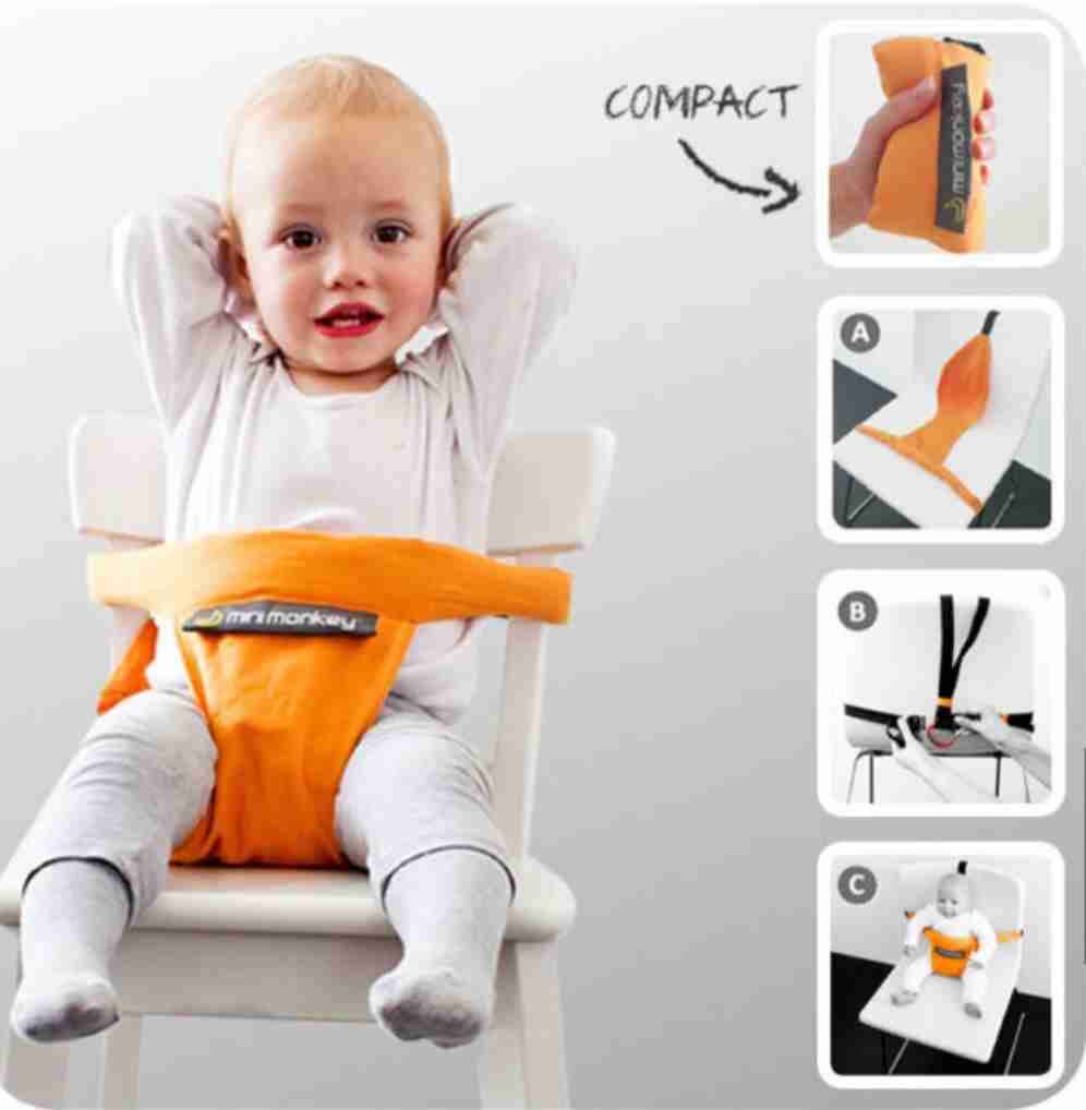 Silla de viaje compacta y fácil de usar. Ideal para mantener seguro al bebé en cualquier silla. Nueva