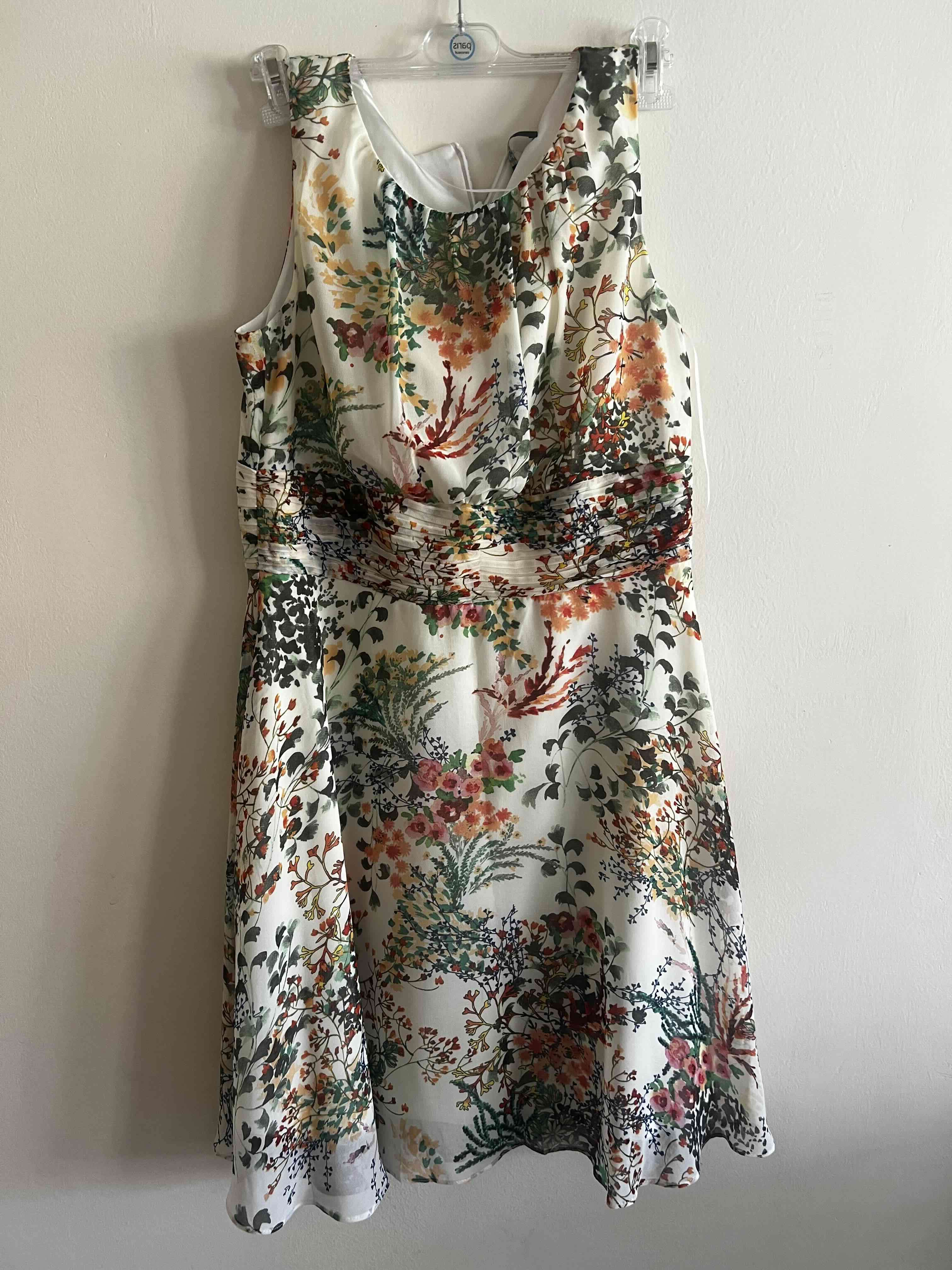 Vestido sin mangas con estampado floral colorido. Ideal para primavera o verano, en buen estado general. Vestido se puede usar para cocktail