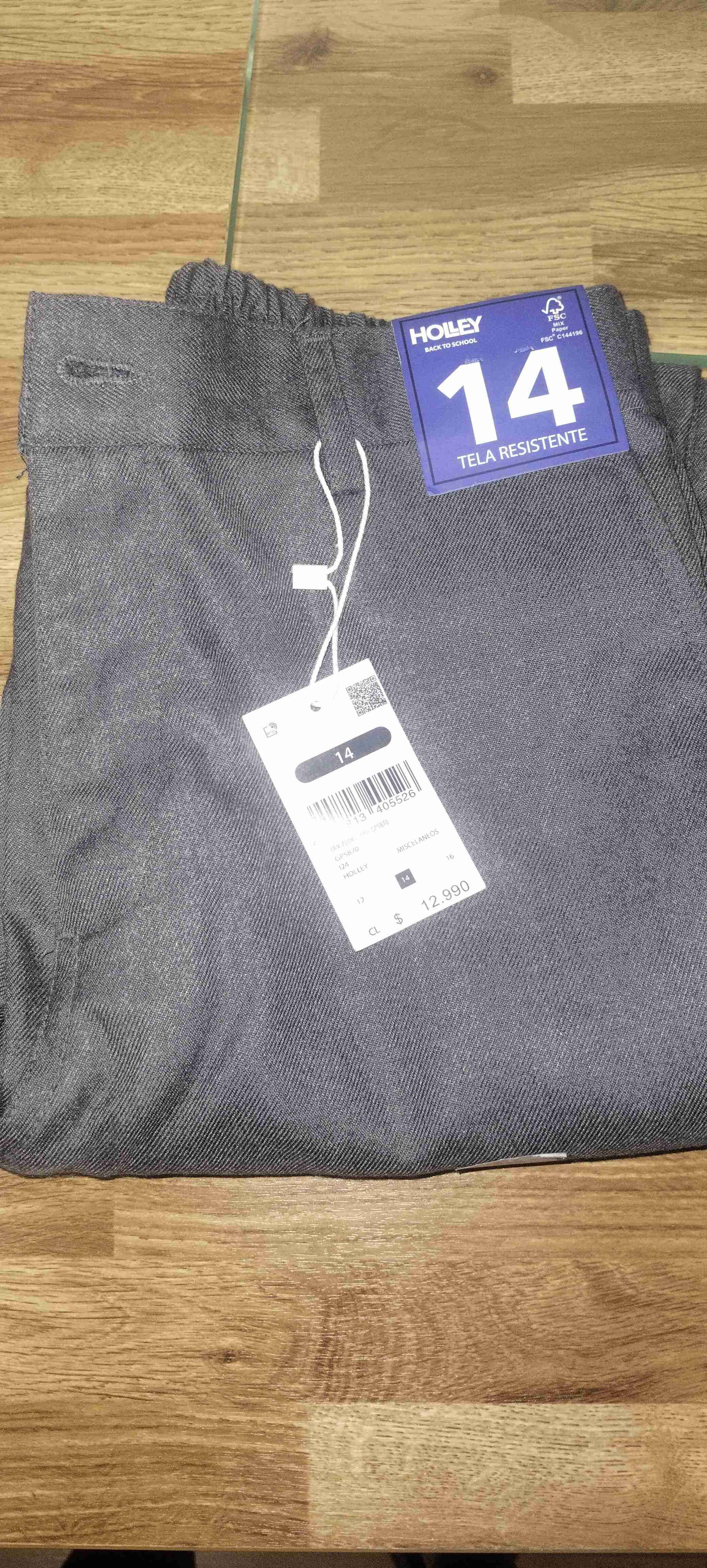 Pantalón gris de tela resistente, ideal para uso escolar. En buen estado, perfecto para el día a día.