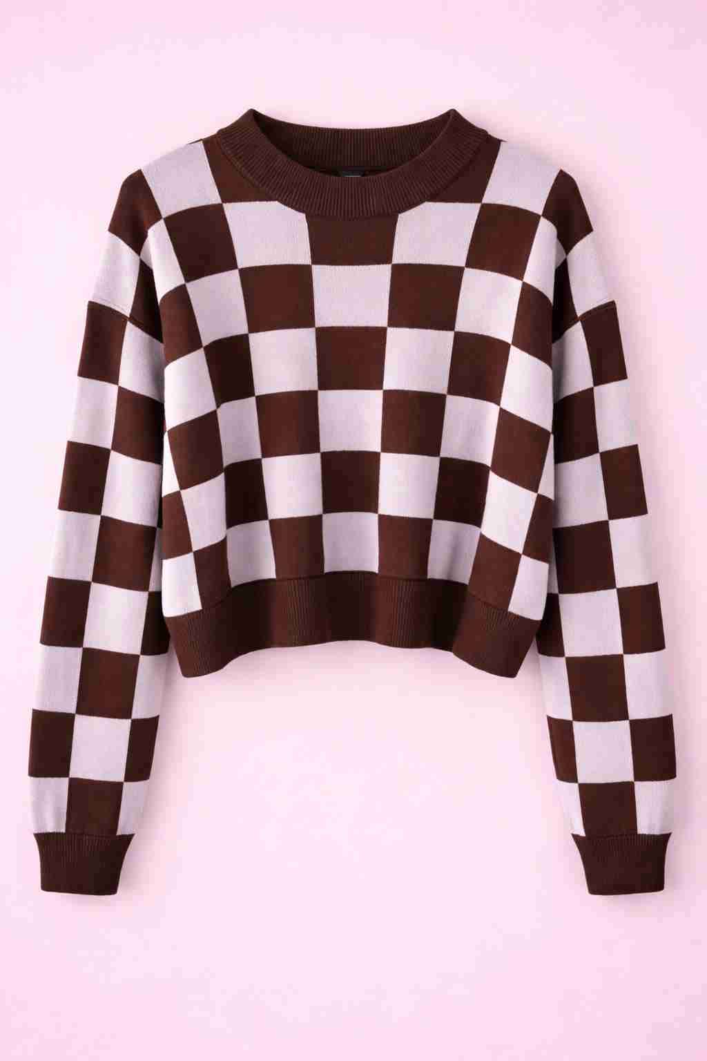 Suéter con diseño a cuadros, estilo casual y juvenil. Buen estado, ideal para días fríos.