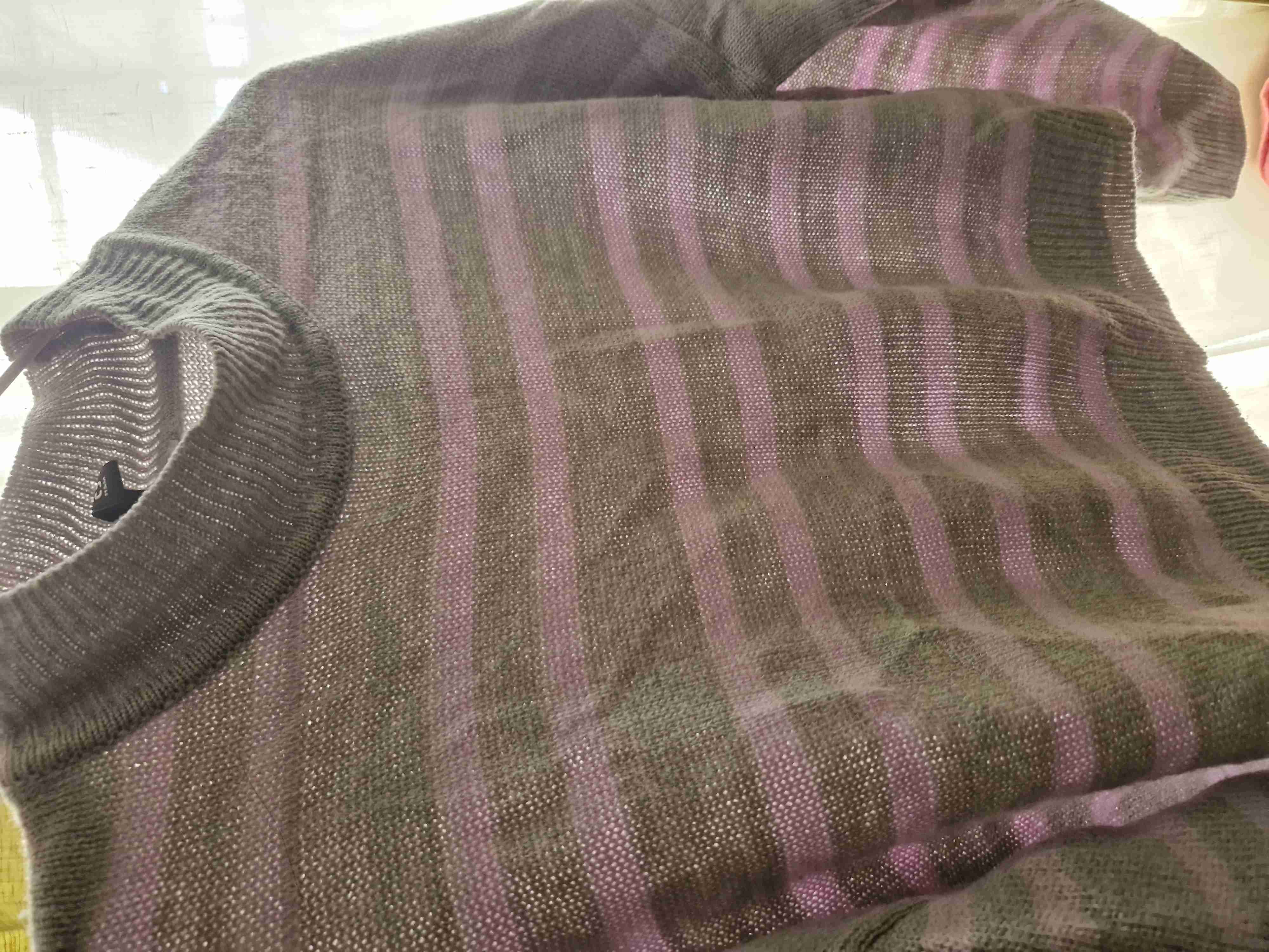 Suéter a rayas grises y rosado, estilo casual y cómodo. En buen estado, ideal para el día a día.
