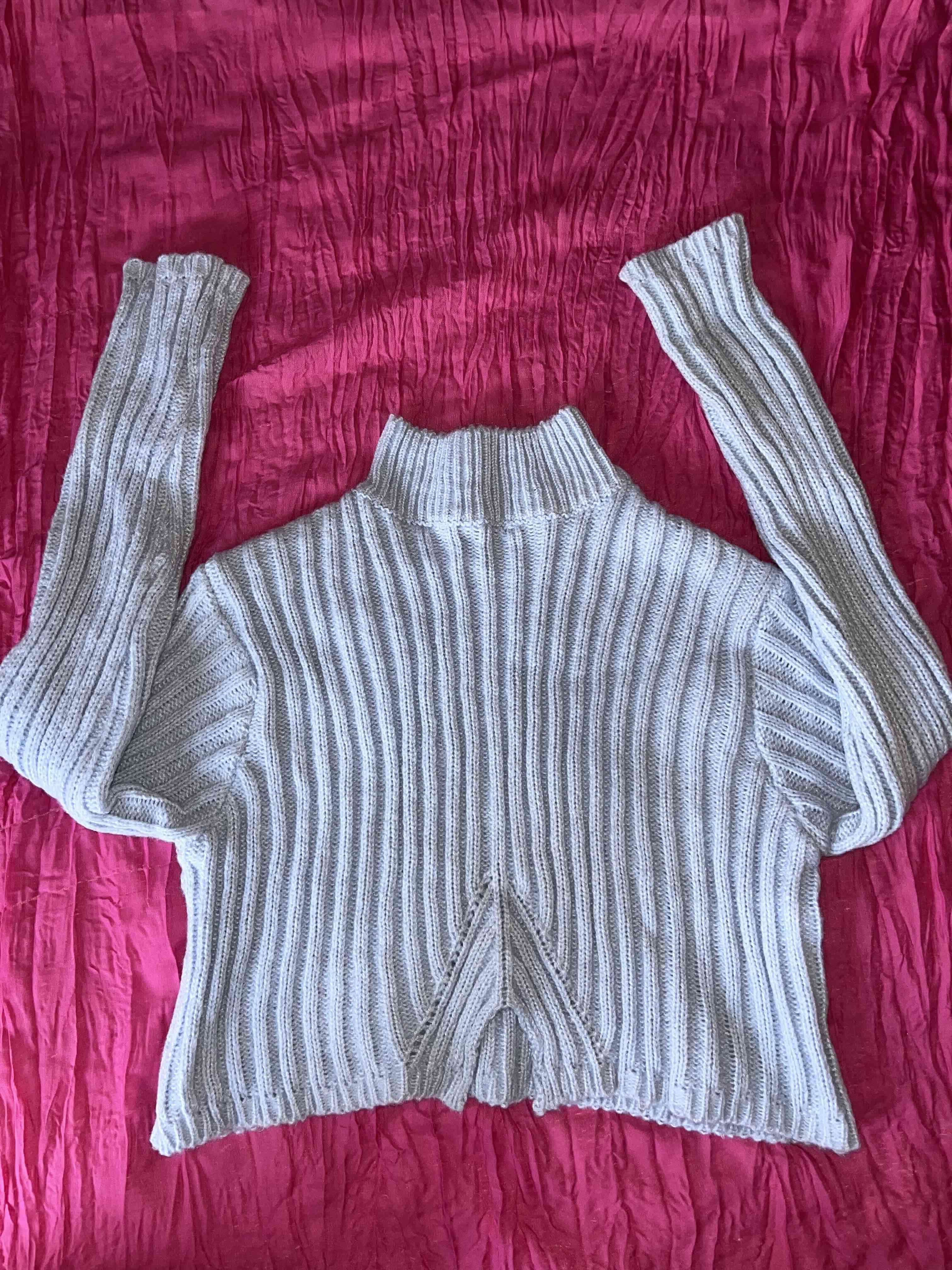Suéter de cuello alto en tono celeste, diseño acanalado. Ideal para días fríos, en buen estado.