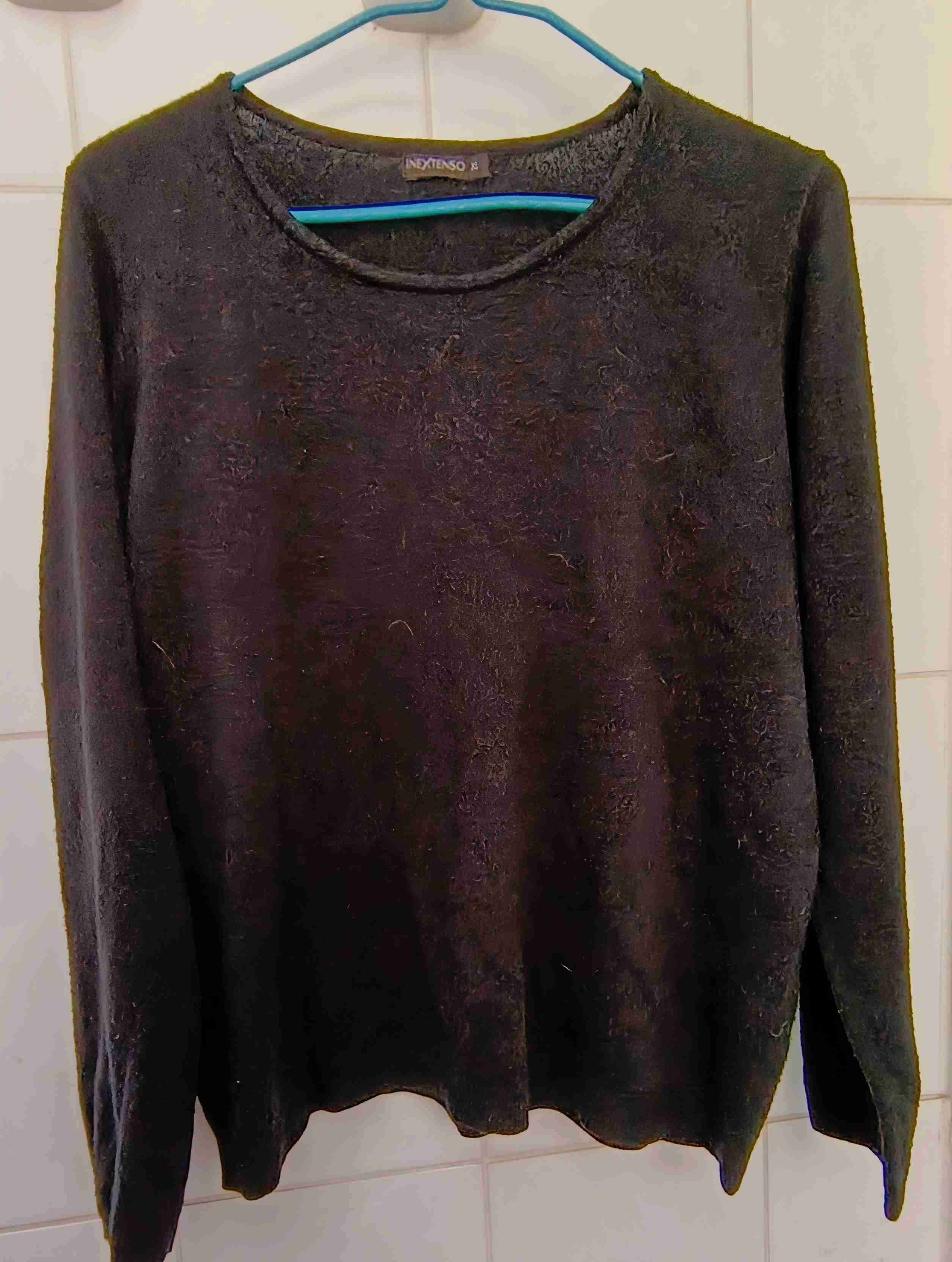 Suéter negro de hilo en buen estado, ideal para días fríos. Tiene algunos signos de uso.