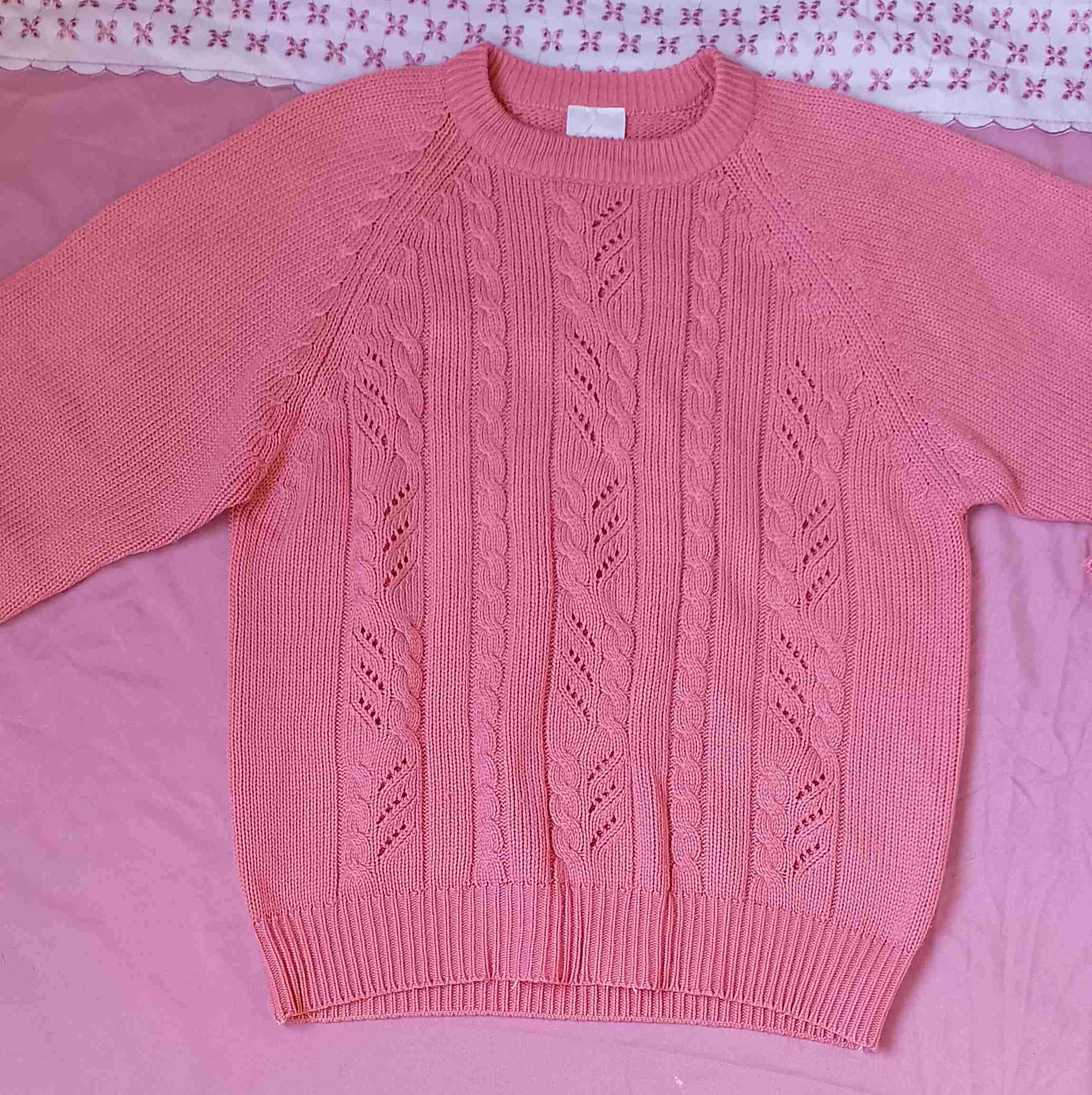 Suéter rosado, tejido con diseño de cable. Ideal para días fríos , excelente estado . Talla M