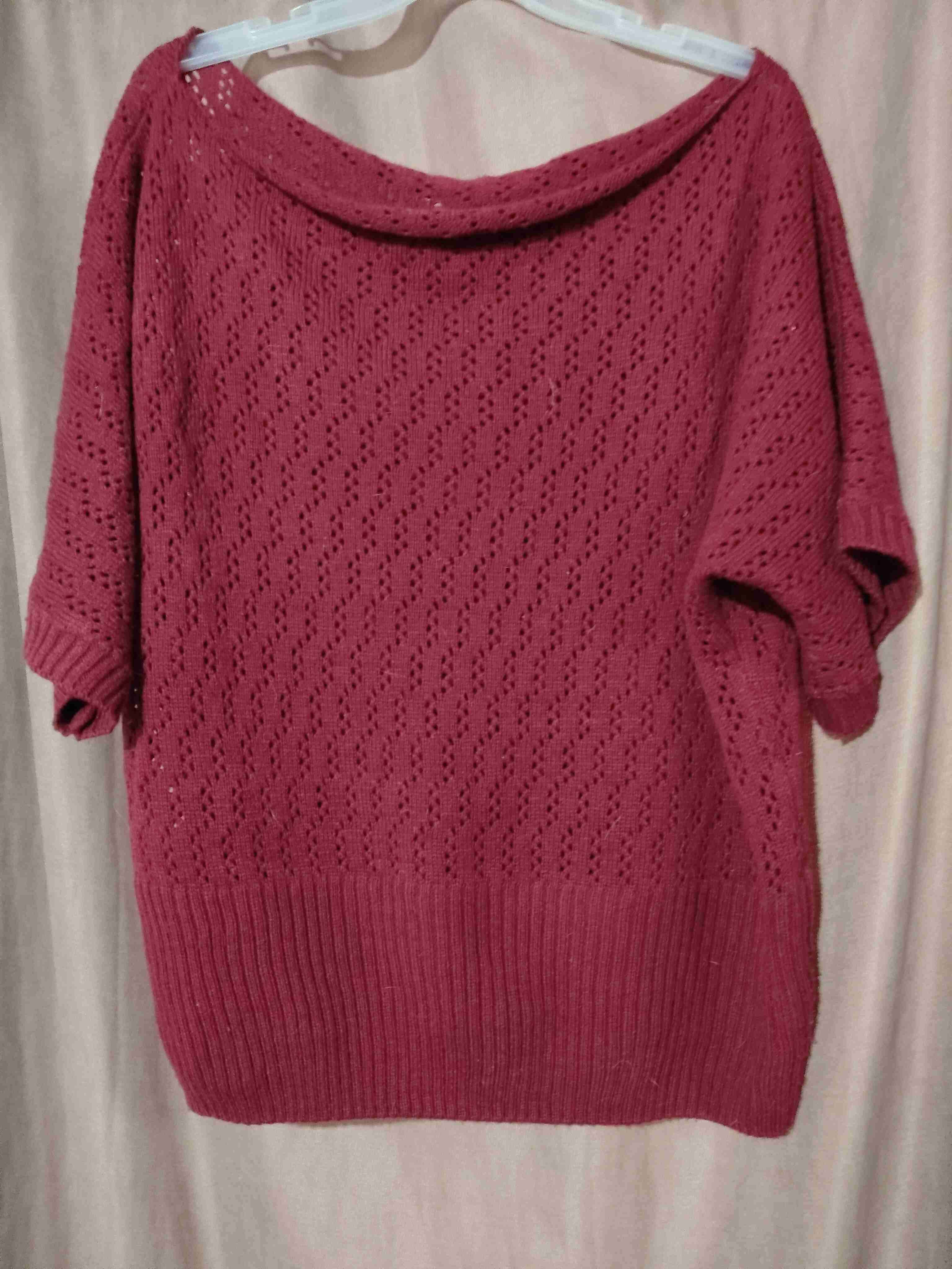 Suéter de punto en color rojo oscuro con diseño calado. Ideal para looks casuales y de entretiempo. Entrega en cualquier metro a convenir