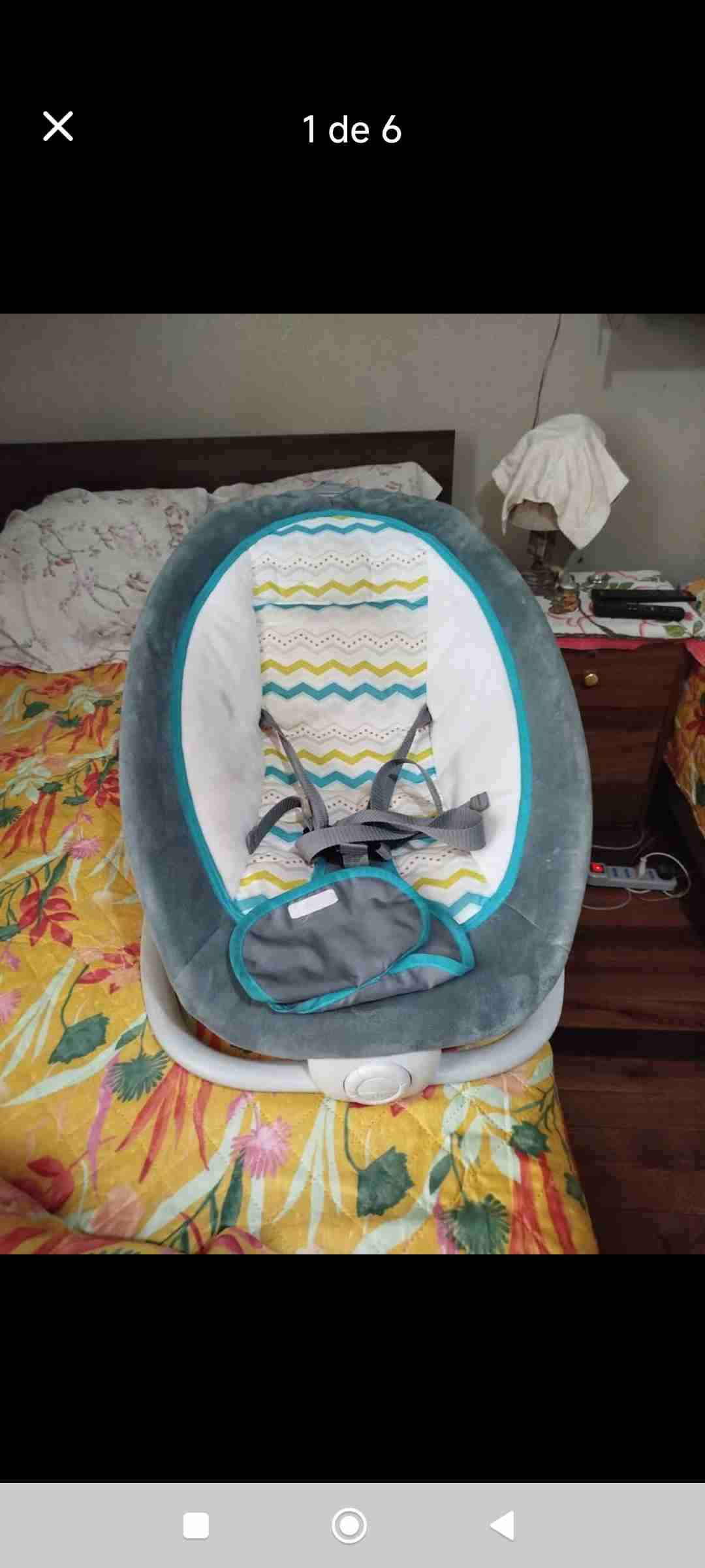 Cómoda silla mecedora para bebé en tonos grises. En buen estado, ideal para el descanso del bebé. Uso en interior.