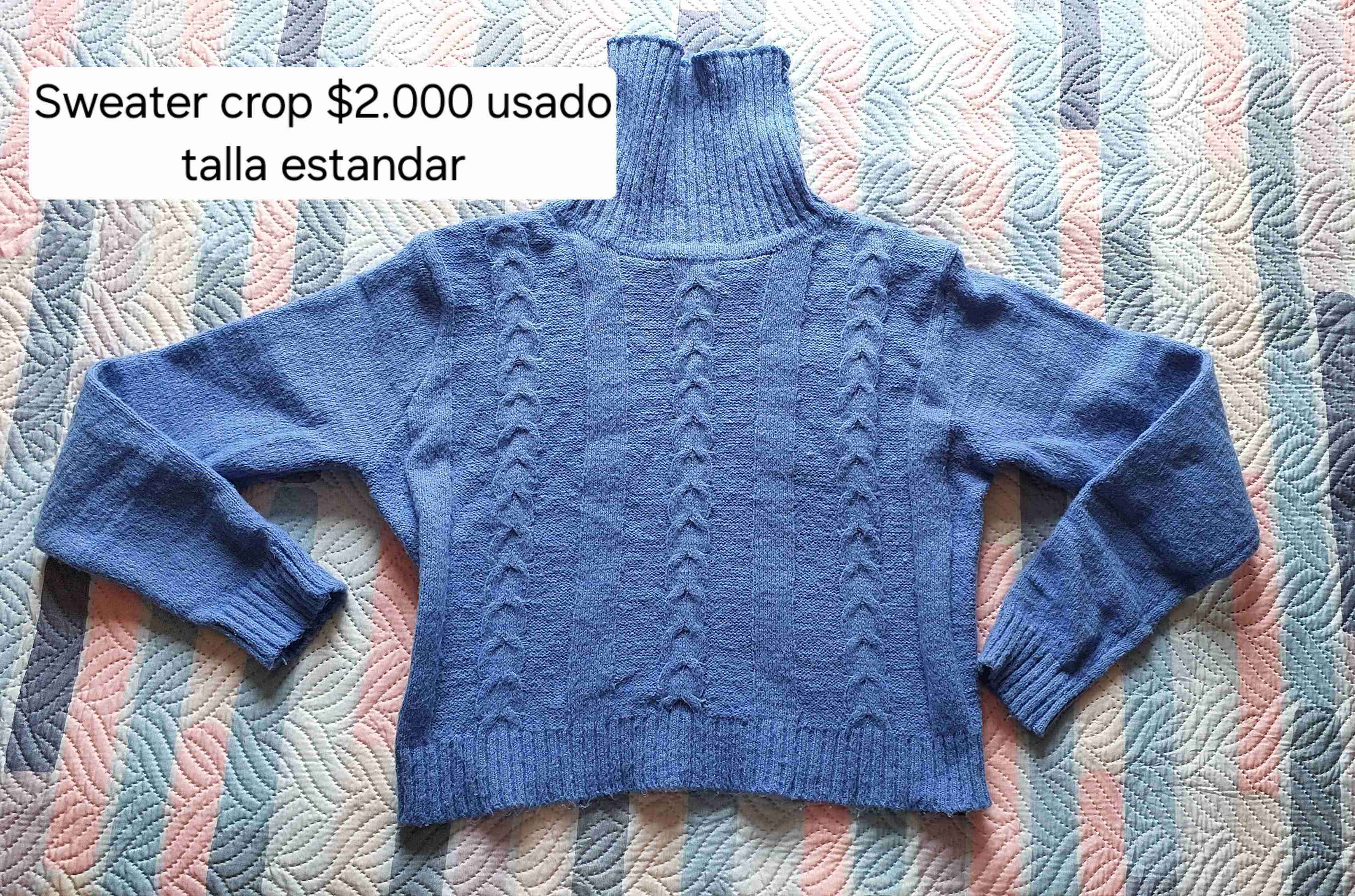 Sweater crop azul con diseño trenzado. Ideal para días frescos. Usado, en buen estado. Talla estándar que abarca xs s m