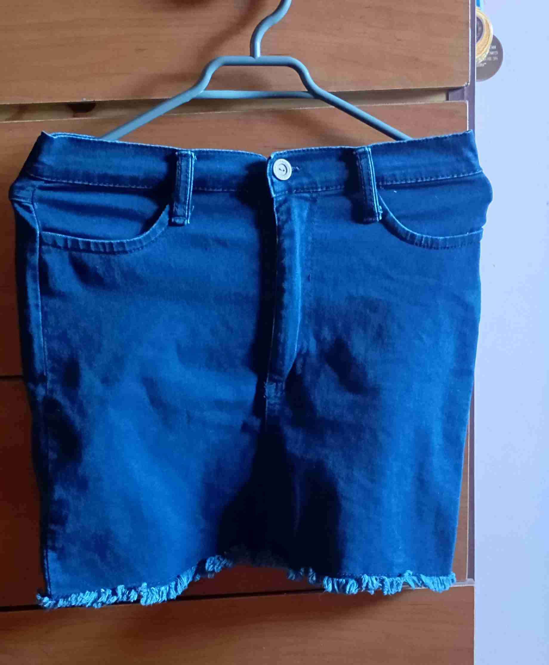Falda de mezclilla azul con borde deshilachado. En buen estado Talla M