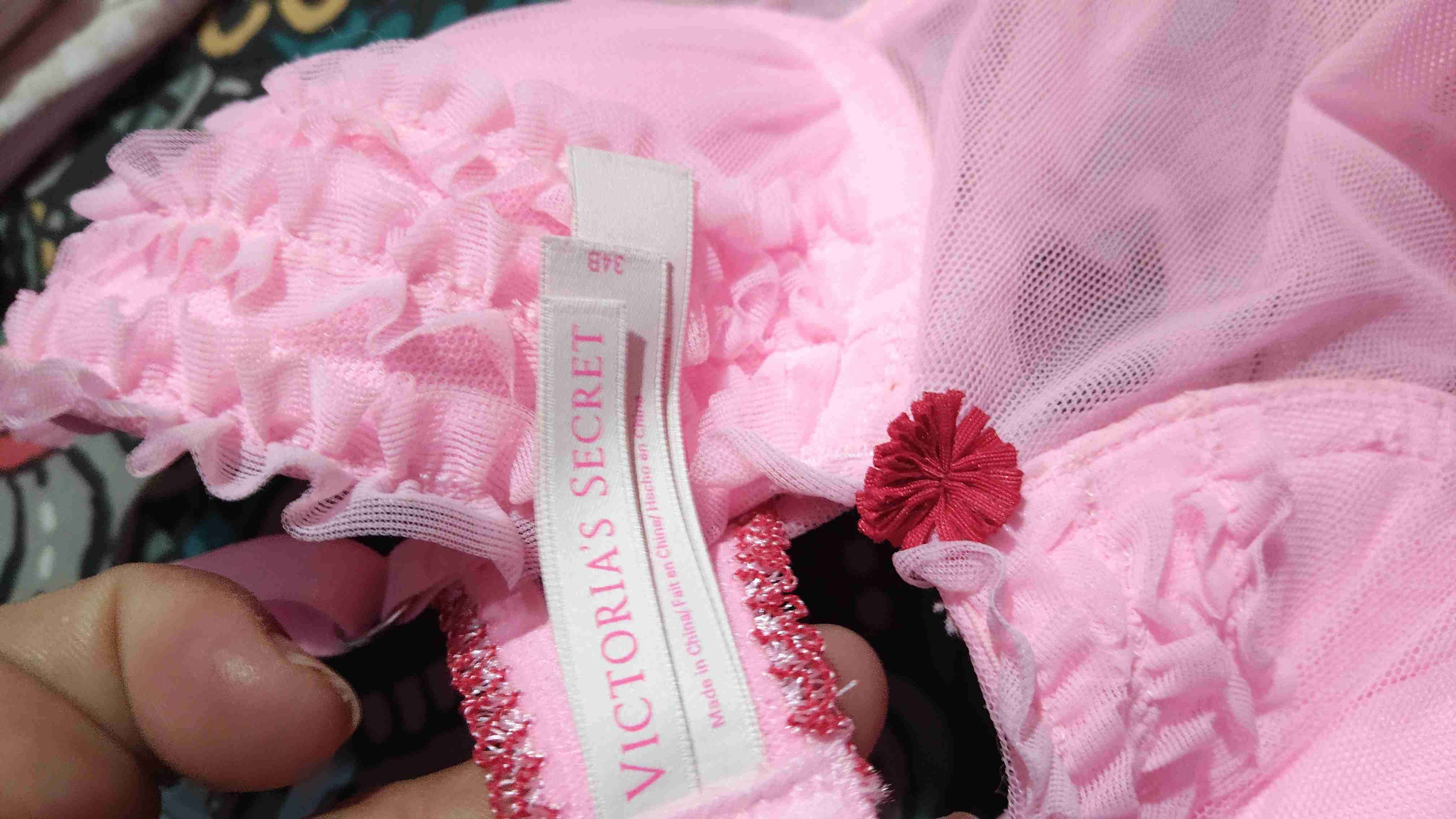 Lencería femenina color rosa con detalles de encaje. Perfecto para ocasiones especiales. Talla 34 B