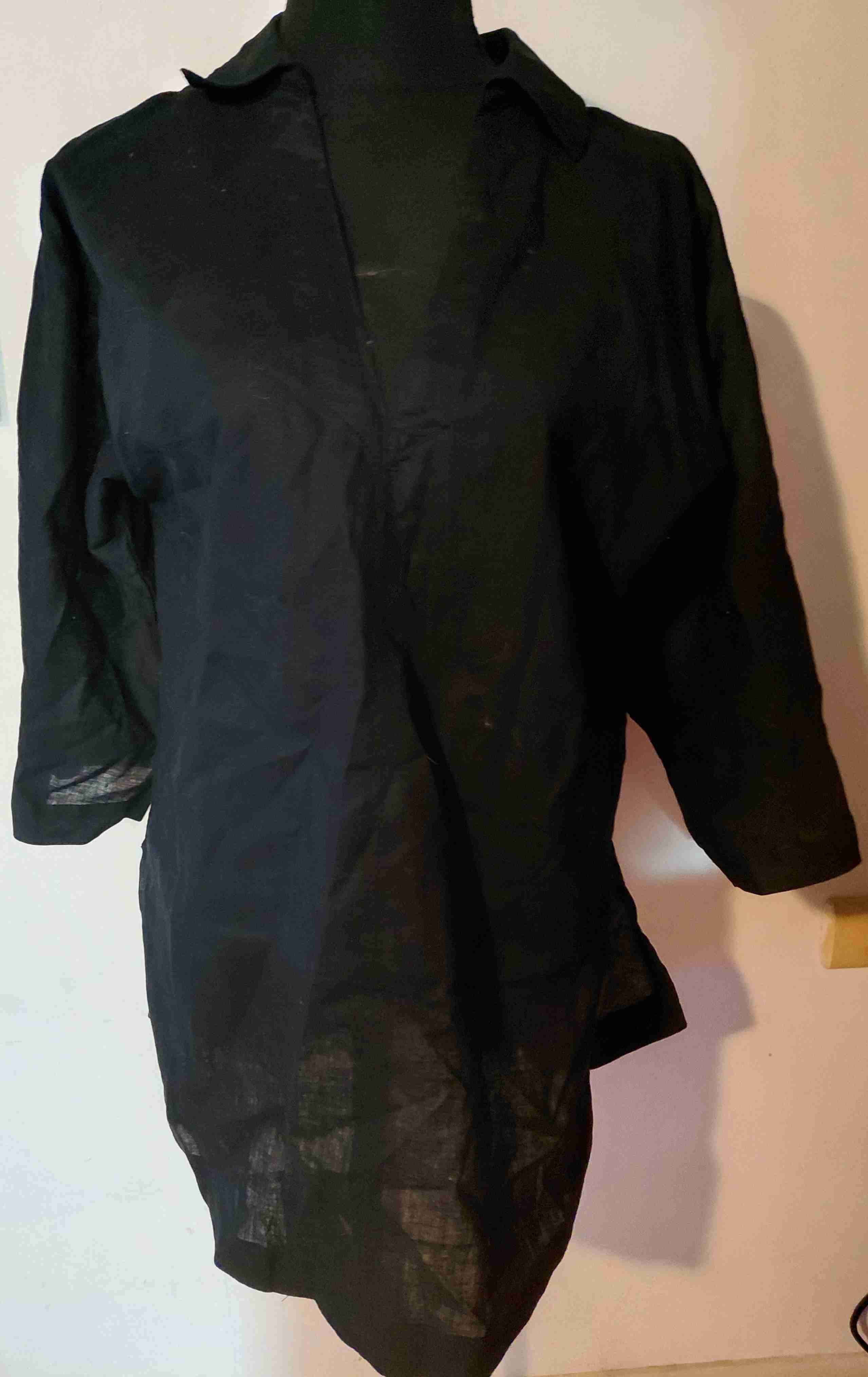 Blusa negra con estilo clásico, perfecta para ocasiones formales o casuales. En buen estado general.