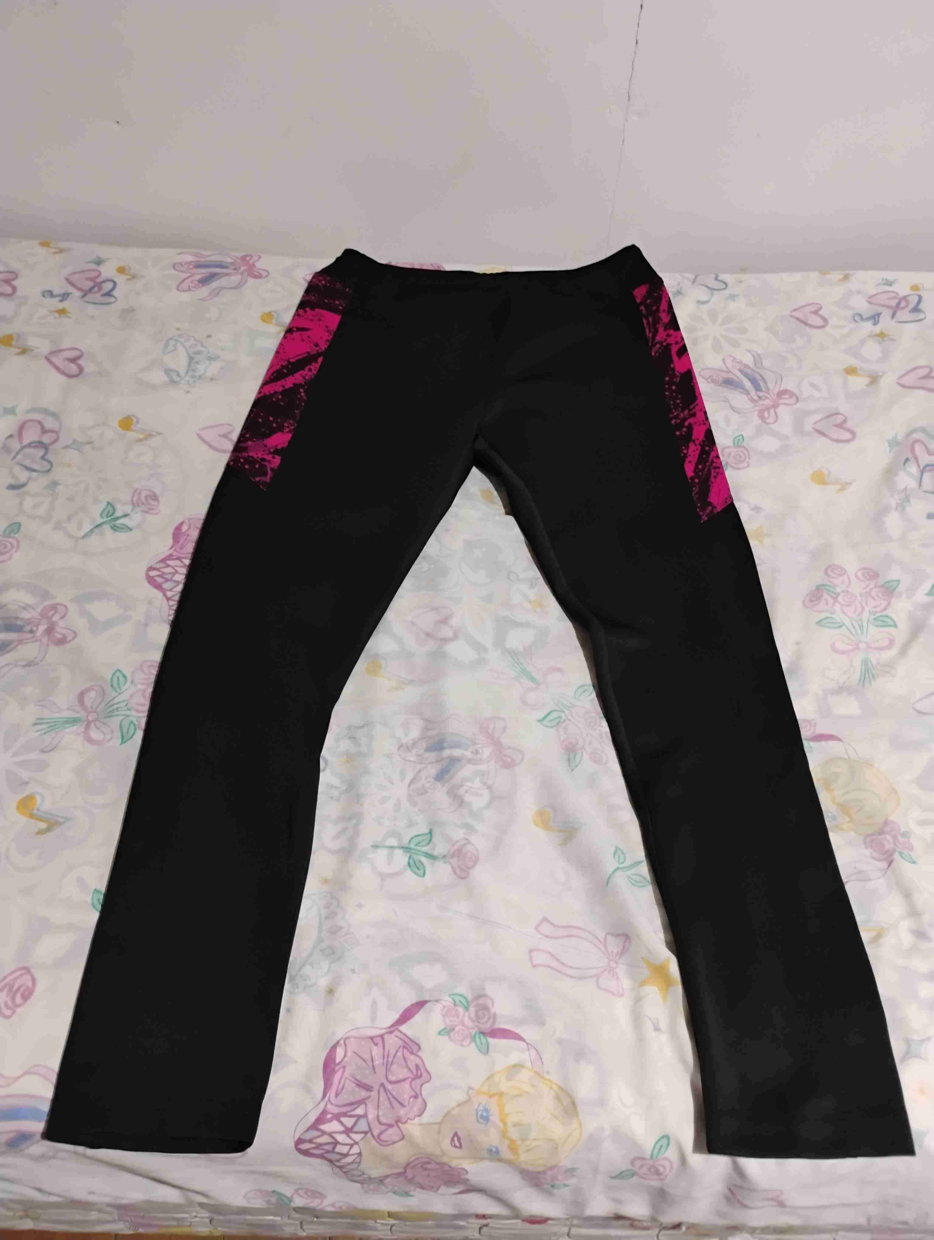 Leggins deportivos negros con detalles rosas. En buen estado, ideales para ejercicio.