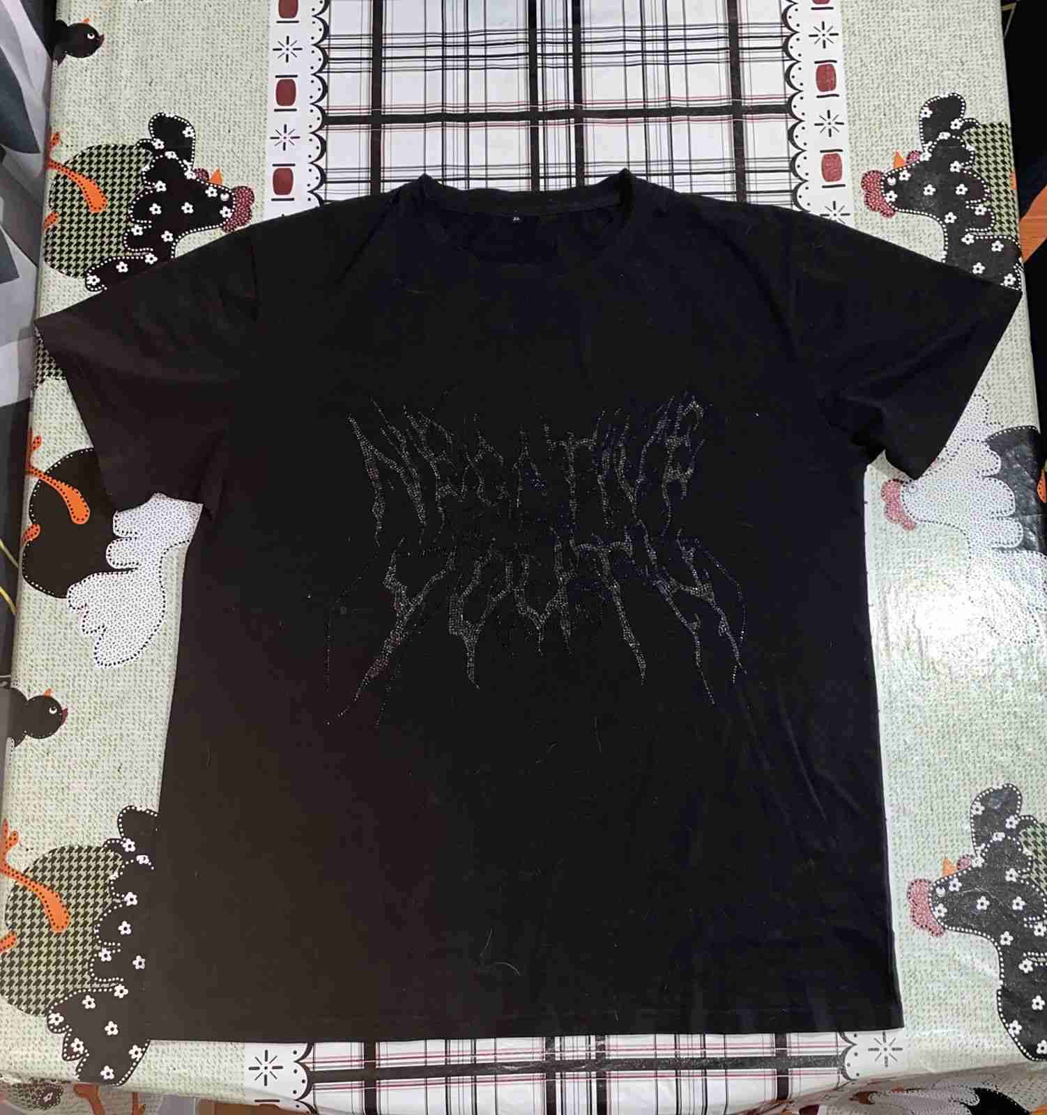 Polera negra con estampado gráfico, ideal para un look casual. En buen estado general.