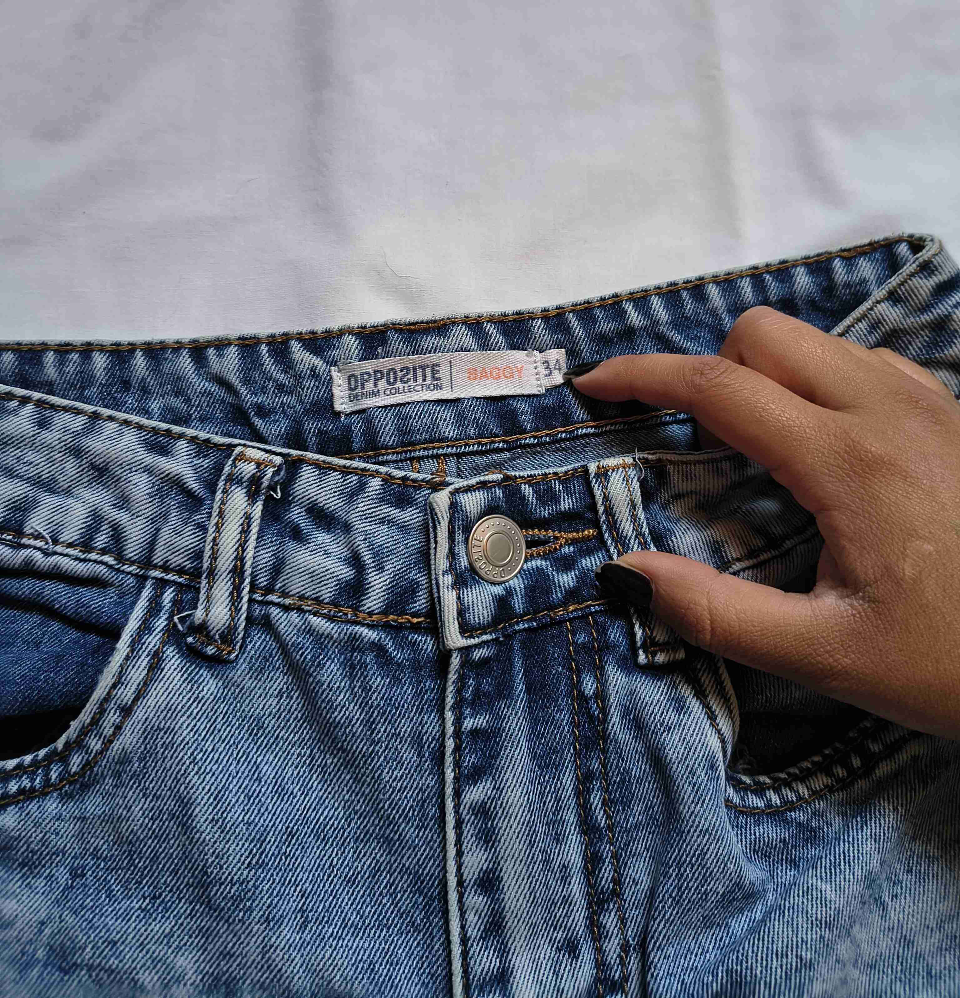 Jeans baggy de mezclilla azul, cómodo y moderno. Ideal para un look relajado. Talla 34