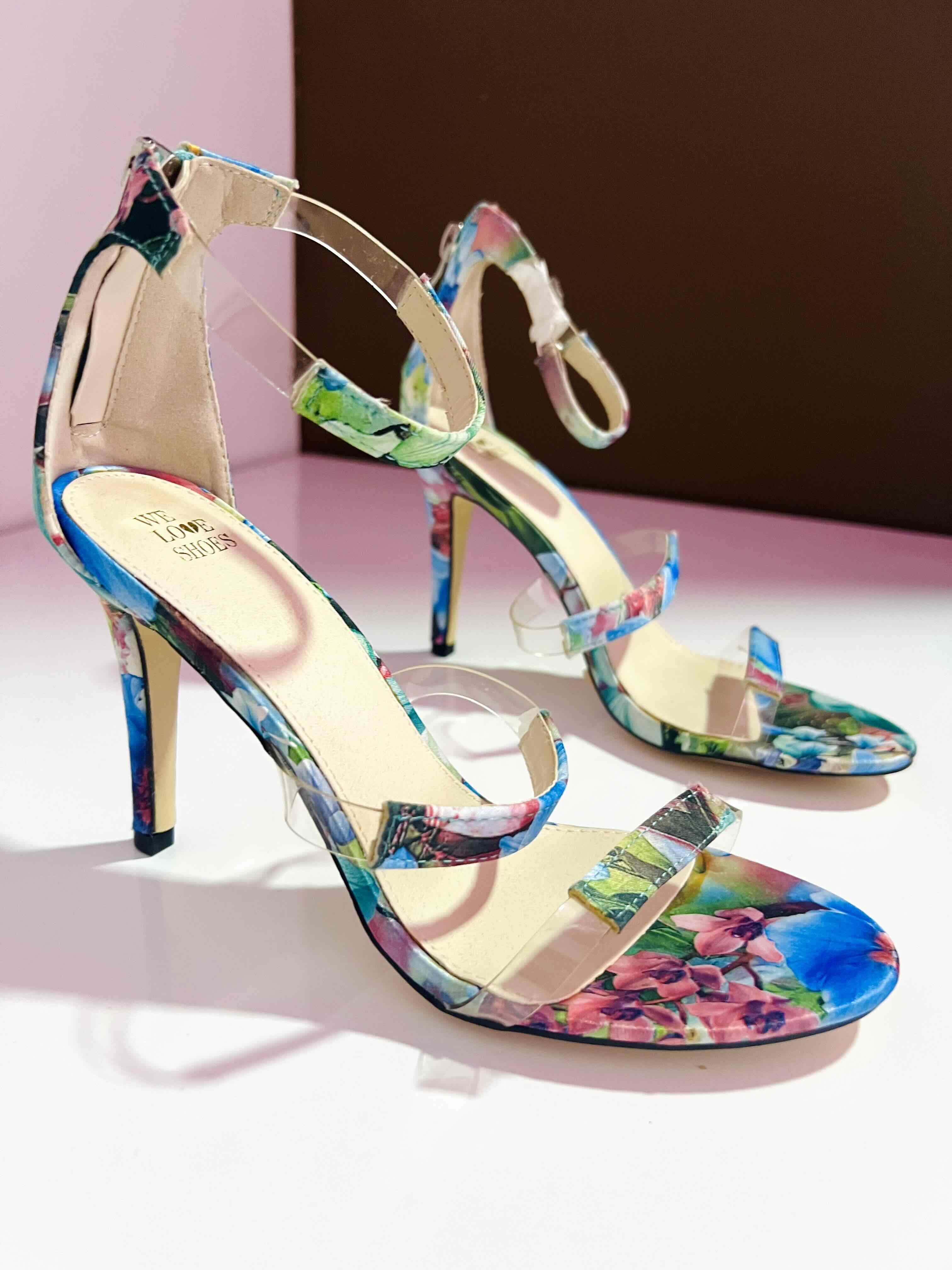 Elegantes tacones con estampado floral, perfectos para ocasiones especiales. Nuevas.