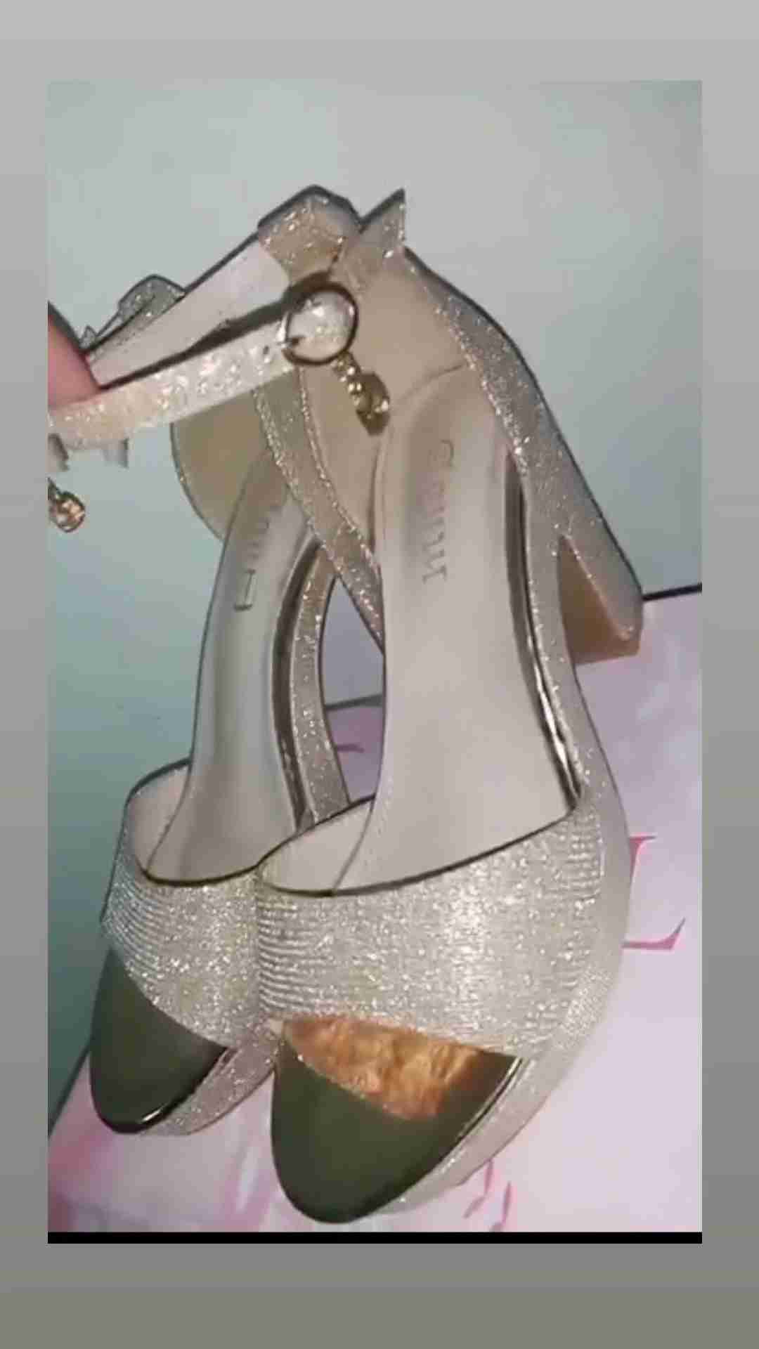 Elegantes sandalias de tacón en tono dorado con brillo. Ideales para ocasiones especiales. Buen estado .tiene un solo uso , son super cómodos y en la parte del tobillo es ajustable