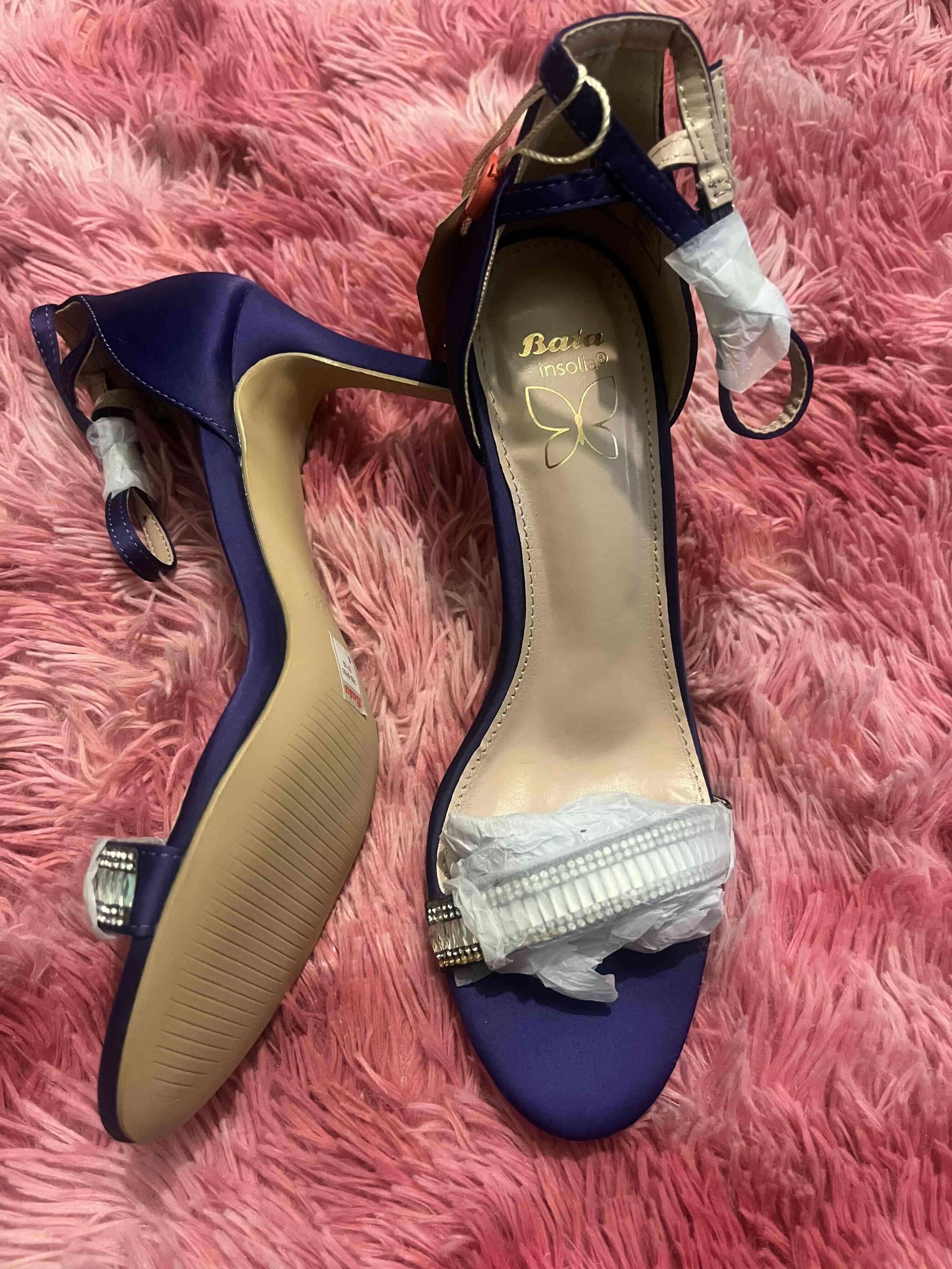 Elegantes tacones morados con detalles brillantes en la correa. Ideal para ocasiones especiales. Nuevo con etiquetas.