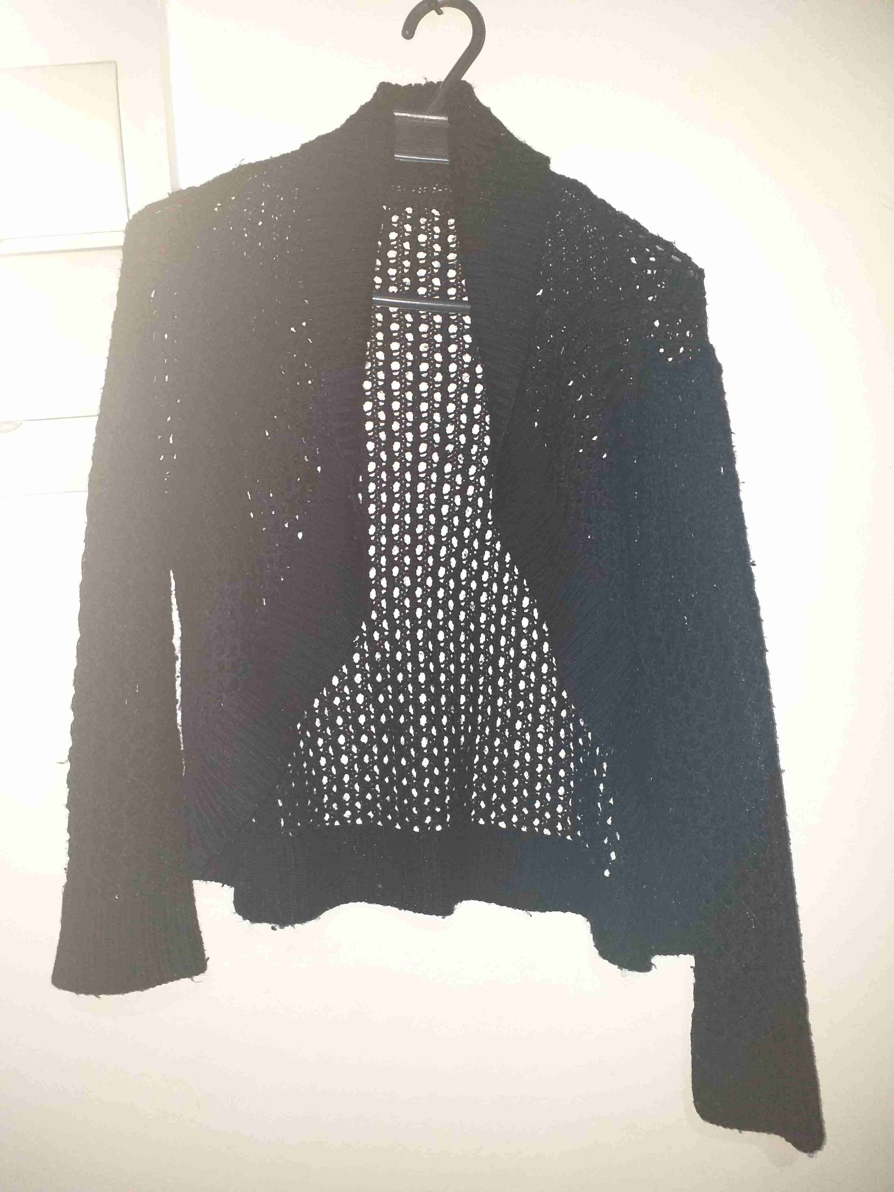 Tapadito de punto negra, ideal para épocas frías. En buen estado, tejida con diseño calado. Talla s