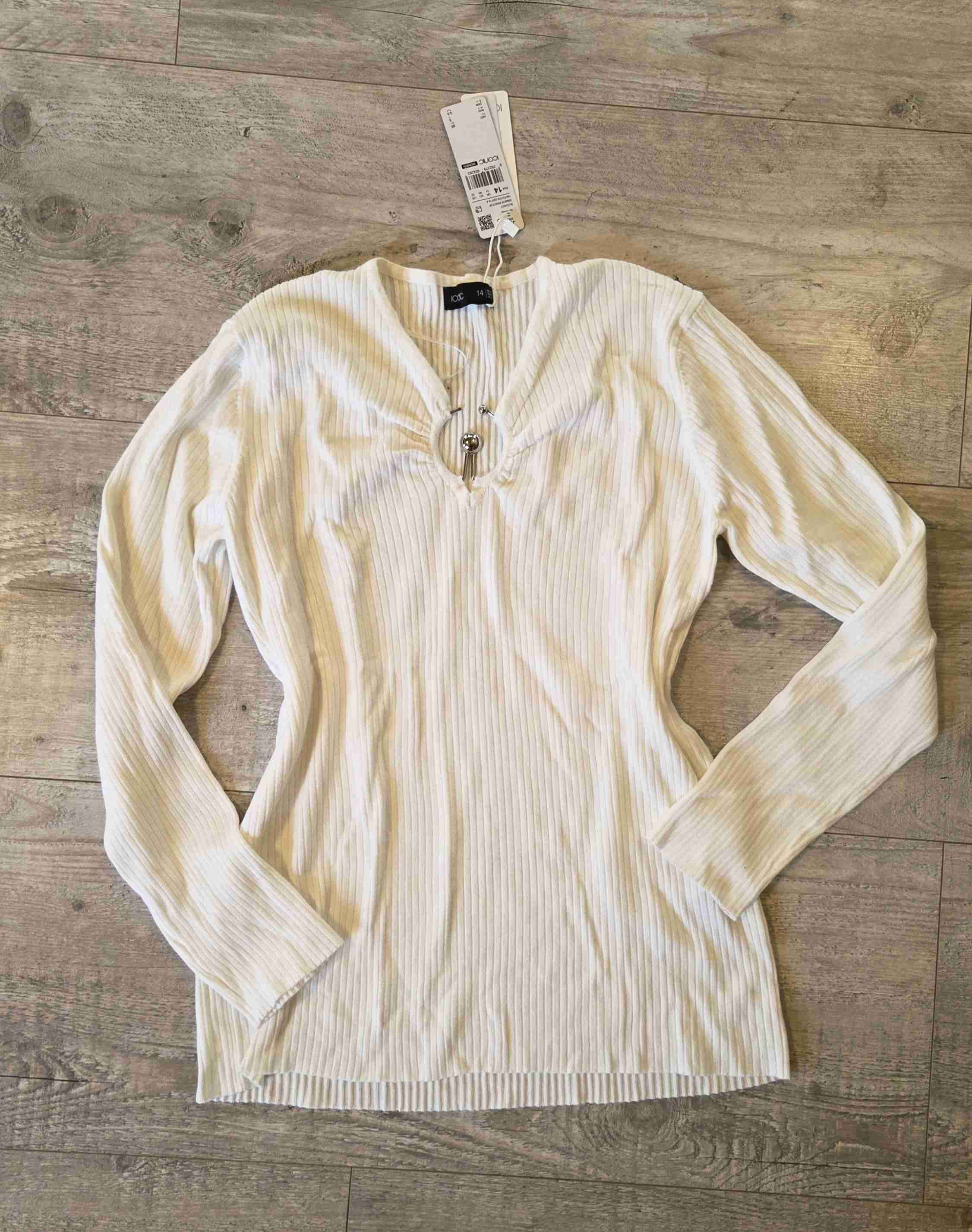 Polera blanca con diseño acanalado y detalle en el escote. Nuevo con etiqueta.