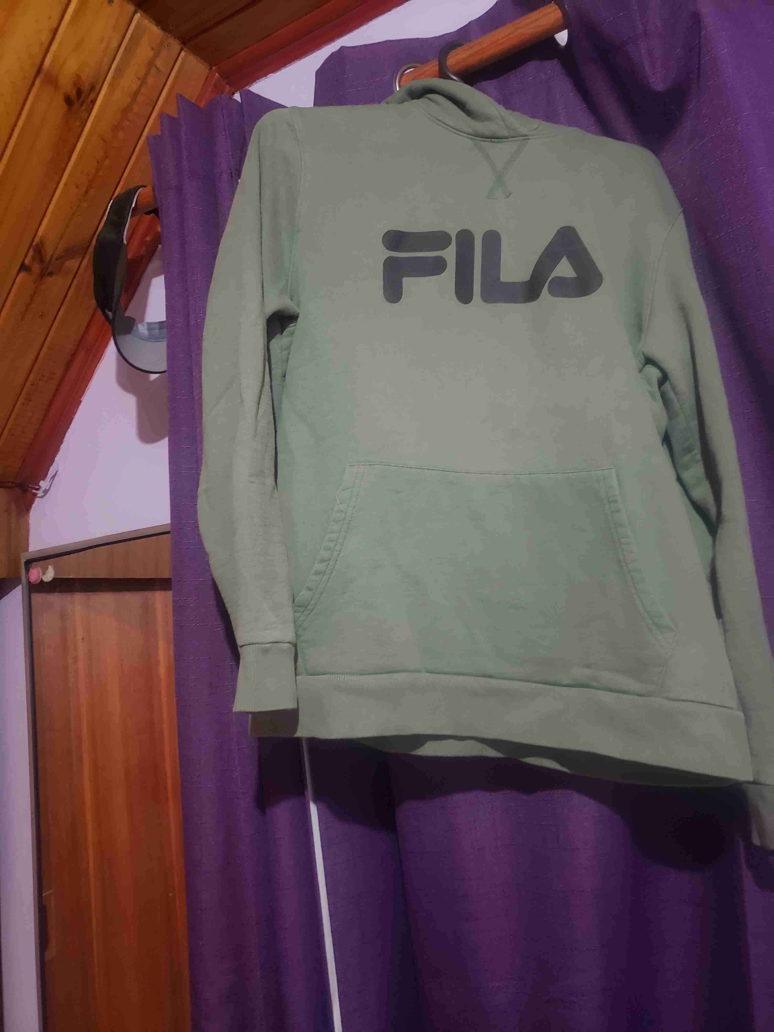 Polerón verde de la marca FILA, unisex, cómodo y casual. En buen estado general.