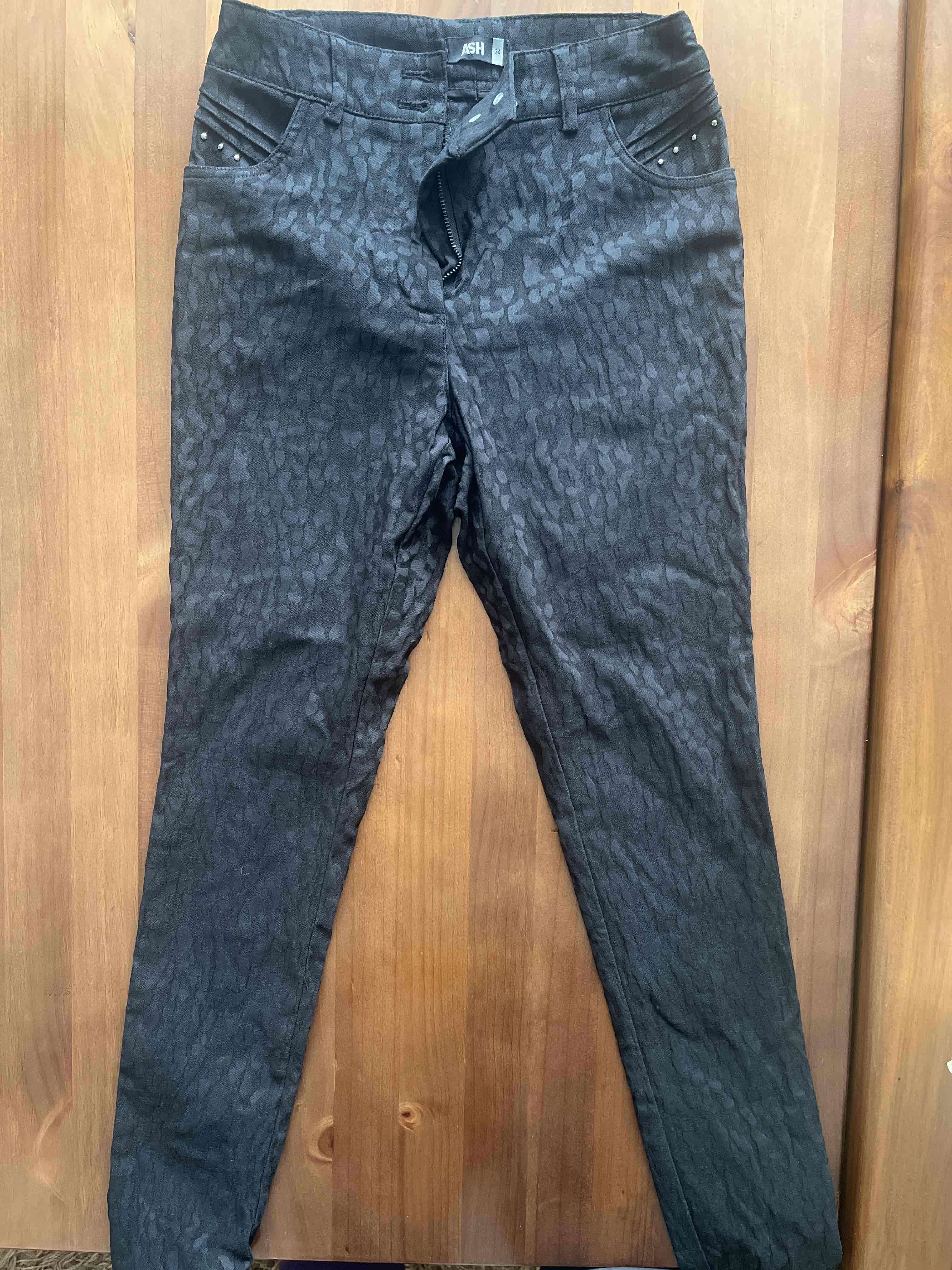 Jeans negros con estampado sutil, en muy buen estado.