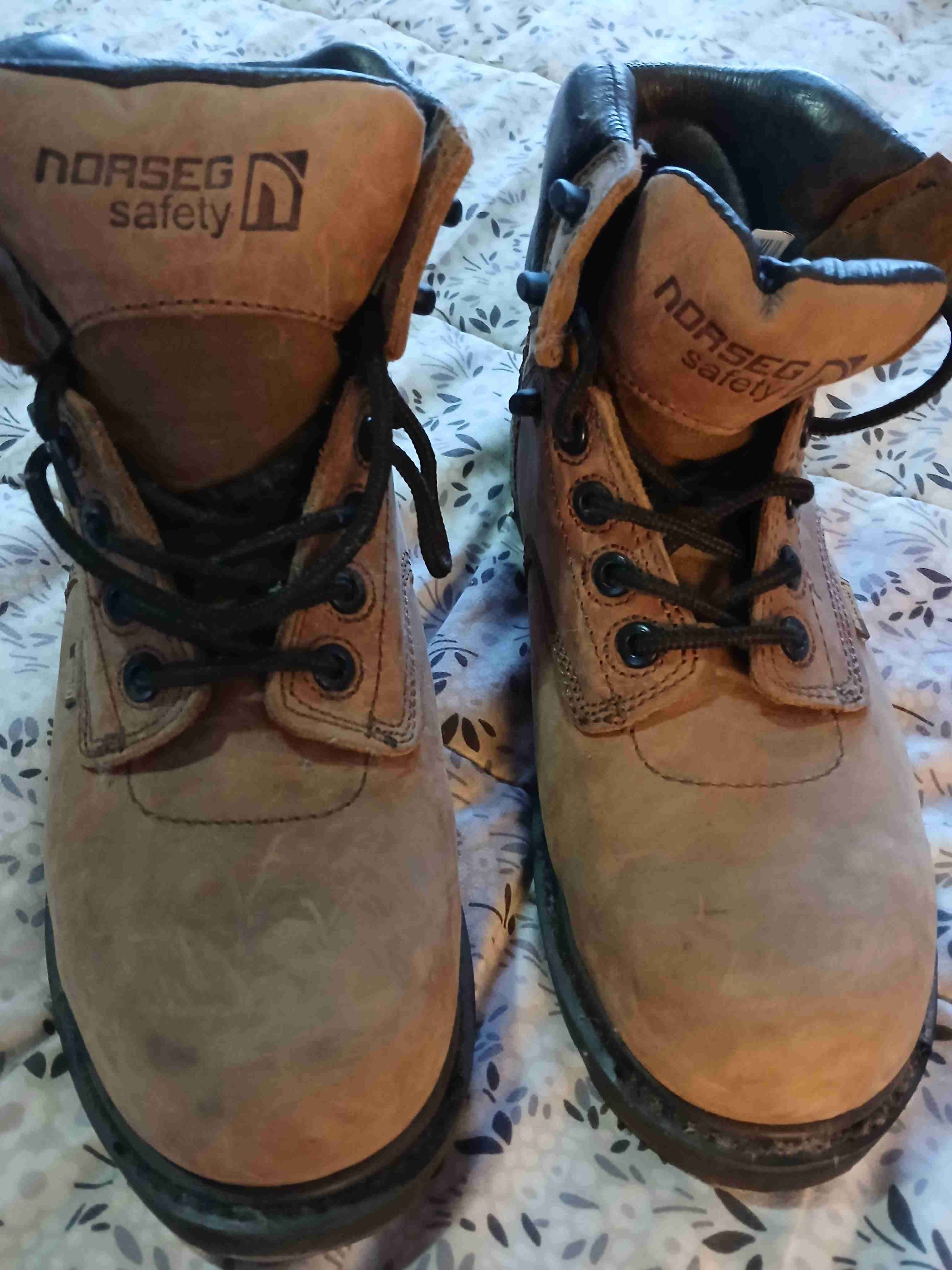 Botas de seguridad color marrón en buen estado. Ideales para trabajo en terreno por su resistencia y comodidad.