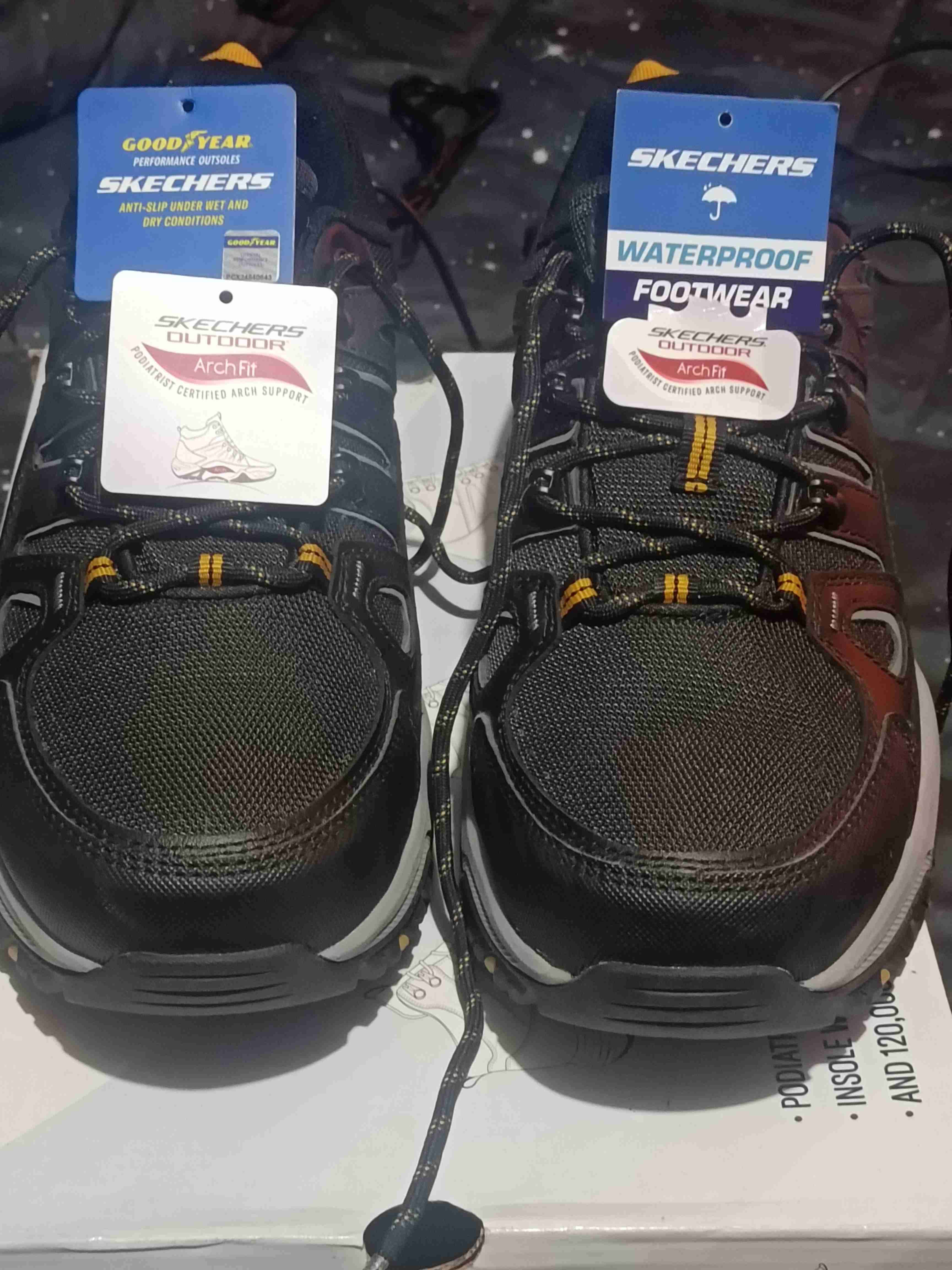 Zapatillas negras Skechers con soporte Arch Fit, ideales para exteriores y condiciones húmedas. Sin usar, con etiquetas.