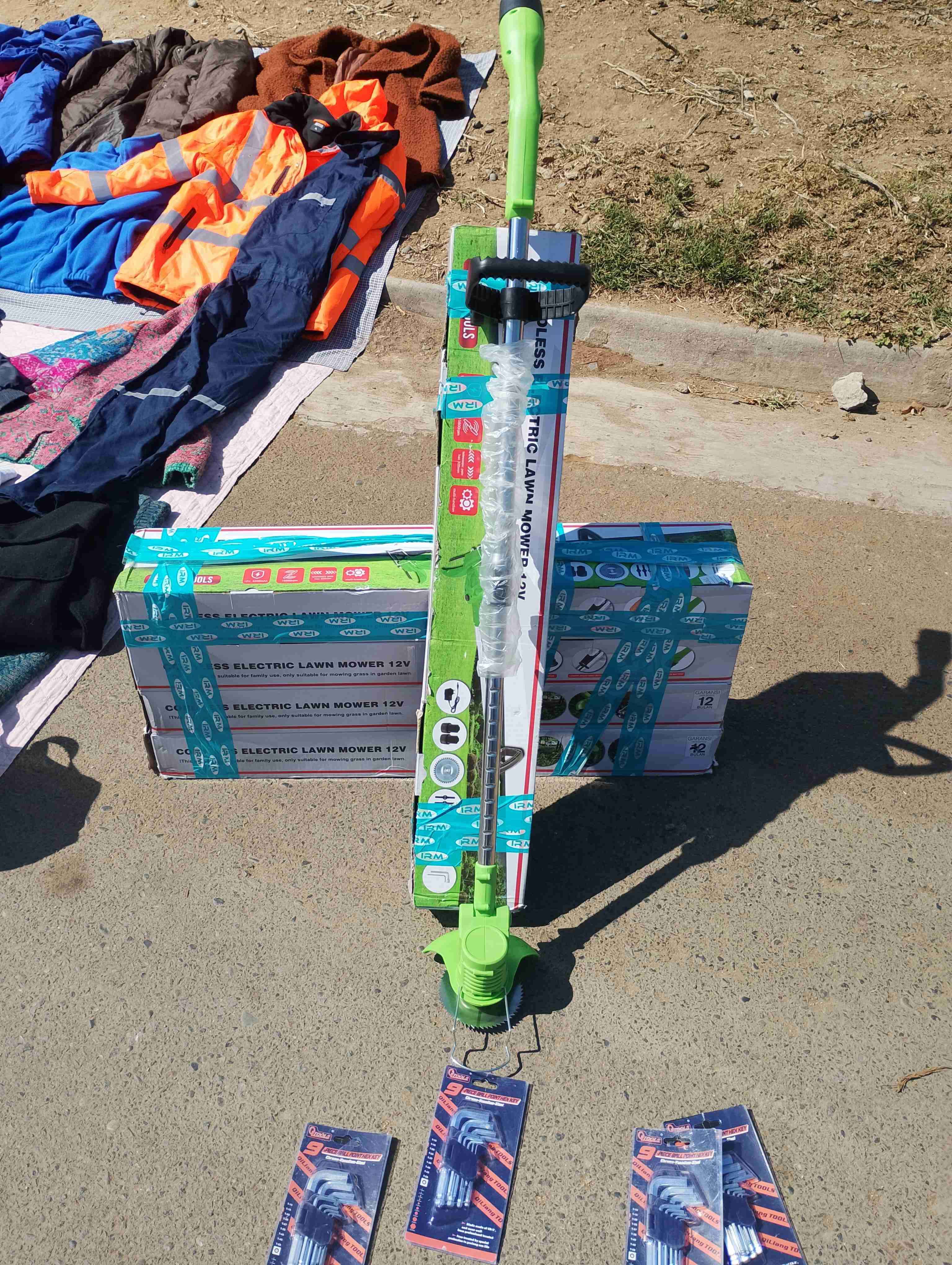 Cortadora de césped eléctrica inalámbrica, ideal para jardines pequeños. Compacta y fácil de usar.